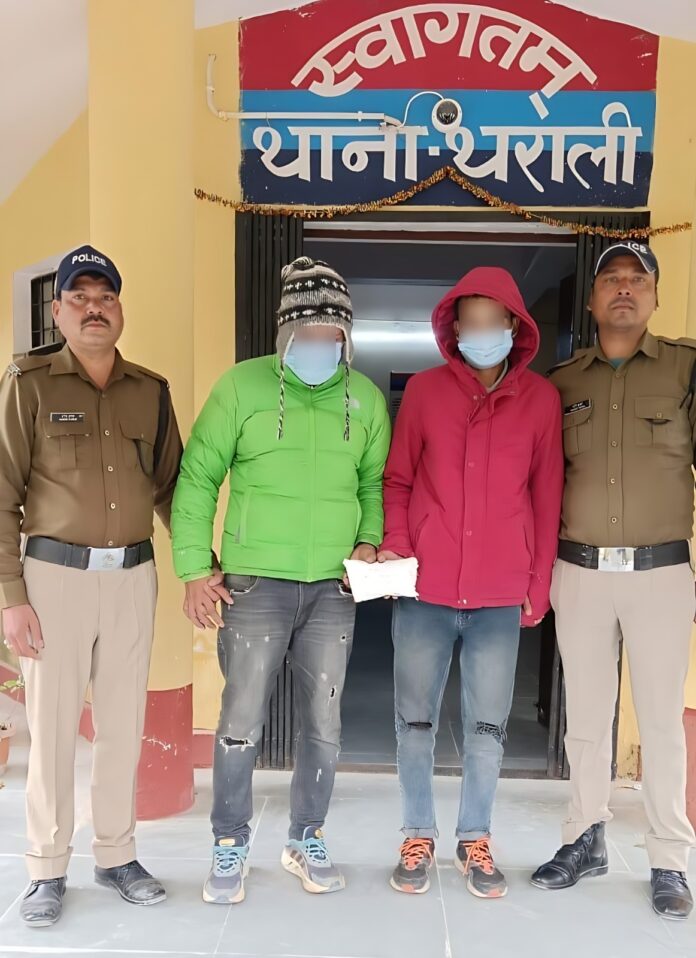 👉 “ड्रग्स फ्री देवभूमि मिशन-2025” के अभियान को सफल बनाते हुये थाना थराली पुलिस द्वारा दिनांक दि0 26.11.2023 की रात्रि को मुखबिर की सूचना पर चेंकिग के दौरान अभियुक्त कार्तिक मंमगाई पुत्र नरेश मंमगाई निवासी तहसील कालोनी ऋषिकेश कोतवाली ऋषिकेश जनपद देहरादून उम्र 30 वर्ष तथा अभियुक्त आकाश बलूनी पुत्र स्व0 रवीन्द्र बलूनी निवासी बिलजी विभाग कालोनी चौहद बीगा थाना मुनी की रेती जिला टिहरी गढवाल उम्र 23 वर्ष को वाहन संख्या UK-14A-4022 (स्विफ्ट डिजायर) कार में 408 ग्राम अवैध चरस परिवहन करते हुये गिरफ्तार किया गया।