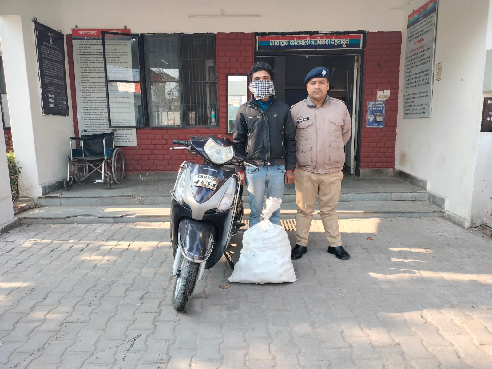 जिस क्रम में दिनांक 26 दिसंबर 2023 को ऋषिकेश पुलिस के द्वारा गंगानगर निरंकारी भवन के सामने से जुपिटर स्कूटी रजिस्ट्रेशन नंबर UK07AA4154 पर कुल 110 पव्वे देशी शराब की तस्करी करते एक अभियुक्त को गिरफ्तार किया गया है। अभियुक्त के विरुद्ध आबकारी अधिनियम के अंतर्गत अभियोग पंजीकृत किया गया है।