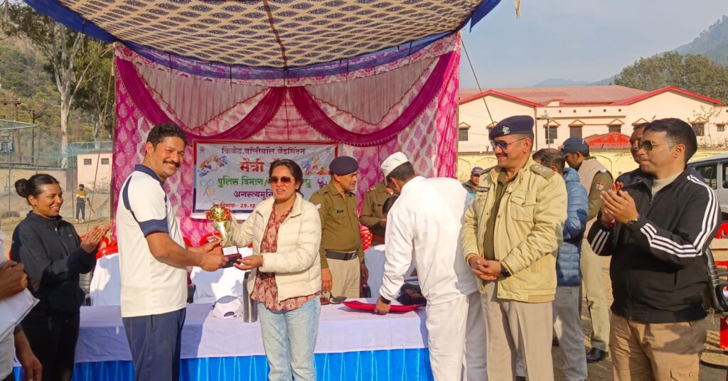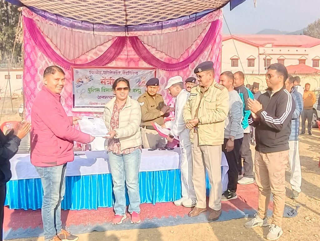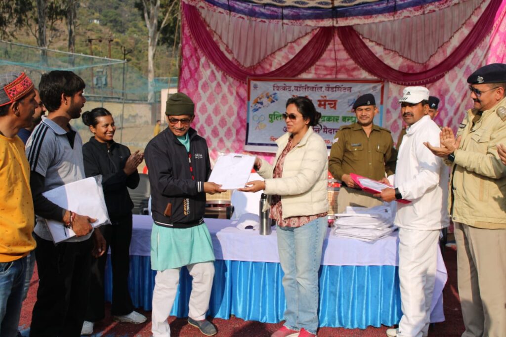 आज आयोजित हुए मैच के अवसर पर पुलिस उपाधीक्षक रुद्रप्रयाग श्री प्रबोध कुमार घिल्डियाल, पुलिस उपाधीक्षक गुप्तकाशी श्री विमल रावत, पुलिस उपाधीक्षक ऑपरेशन्स सुश्री हर्षवर्धनी सुमन, प्रतिसार निरीक्षक श्री गणेश लाल, प्रभारी निरीक्षक कोतवाली रुद्रप्रयाग श्री जयपाल सिंह नेगी, थानाध्यक्ष अगस्त्यमुनि श्री राजीव चौहान, प्रभारी सोशल मीडिया सेल पुलिस कार्यालय नरेंद्र सिंह सहित पुलिस विभाग के खेल प्रेमी एवं जनपद रुद्रप्रयाग मीडिया बन्धु गण उपस्थित रहे।