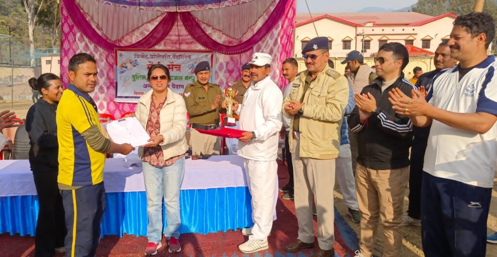 इस अवसर पर गत दिवस वालीबाॅल की विजेता रही एसडीआरएफ टीम व बैडमिंटन डबल्स के विजेता व उप-विजेता प्रतिभागियों को ट्राफी दी गयी।