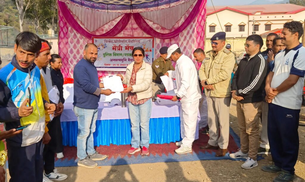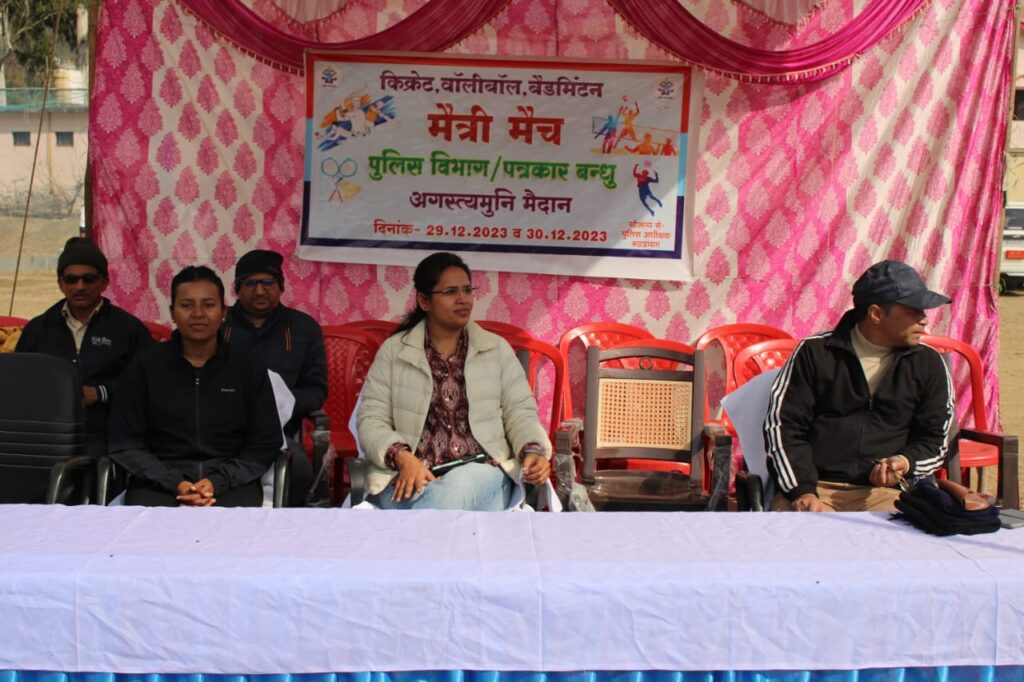 पूर्व निर्धारित कार्यक्रम के अनुसार आज दिनांक 30 दिसम्बर 2023 (शनिवार) को जनपद रुद्रप्रयाग पुलिस और जनपद रुद्रप्रयाग मीडिया बन्धु (प्रेस) के मध्य क्रीड़ा मैदान अगस्त्यमुनि में एक मैत्री क्रिकेट मैच का आयोजन हुआ।