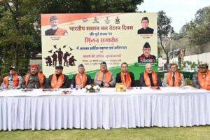 सैनिक कल्याण मंत्री ने कहा भारतीय सेना के गौरवमयी इतिहास में उत्तराखण्ड के सैनिकों का अति विशिष्ट योगदान रहा है। उत्तराखण्ड के सपूतो ने जांवॉज सैनिकों के रुप में देश में ही नही अपितु विश्व के जनमानस के मध्य एक लोकप्रिय पहचान बनाई है। हमारे सैनिकों का देश की सीमाओं की रक्षा आंतरिक सुरक्षा एवं दैवीय आपदाओं से निपटने में अग्रणी योगदान रहा है। उन्होंने कहा उत्तराखण्ड के सैनिकों ने सैन्य इतिहास के पन्नों में खून से अपना नाम लिखकर अमर कर दिया है। मंत्री ने कहा आज भी इन सैनिकों की बहादुरी कर्तव्यनिष्ठा और देश भक्ति जग जाहिर है और ये न केवल प्रदेश के लिये बल्कि पूरे देश के लिये प्रेरणा के स्त्रोत हैं । सैनिक कल्याण मंत्री गणेश जोशी ने कहा एक पूर्व सैनिक होने के नाते आपकी सेवा के लिए आपको धन्यवाद देना मेरे लिए सम्मान की बात है। उन्होंने कहा मुख्यमंत्री पुष्कर सिंह धामी के नेतृत्व में राज्य सरकार द्वारा पूर्व सैनिकों तथा उनके अश्रितों के लिए विभिन्न कल्याणकारी योजनाओं का संचालन कर रही है। जिसमें वीरता पदक धारकों के अनुदान राशि में अभूतपूर्व वृद्धि की गई है। राज्य सरकार द्वारा वीरता पदक धारकों को राज्य परिवहन की बसों में निशुल्क यात्रा का प्रावधान किया गया है। उन्होंने कहा कि इस देश में एक ऐसा दौर भी रहा जब हमारे इन वीरों को को बुनियादी सुविधाओं तक के लिए संघर्ष करना पड़ा। रोजमर्रा की आवश्यकता के लिए भी संघर्ष करना पड़ता था। मंत्री ने कहा आज प्रधानमंत्री नरेंद्र मोदी के नेतृत्व में सेना के सशक्तिकरण किया जा रहा है। आज ना केवल हमारे सैनिक अत्याधुनिक हथियारों और सुविधाओं से लैस हैं, बल्कि उनका आत्मविश्वास भी बढ़ा है। उन्होंने कहा आज सेना दुश्मन को जवाब देने के लिए पहले की तरह इंतजार नहीं करती, बल्कि गोली का जवाब गोले से देती है। उन्होंने कहा जवानों के बीच कोई प्रधानमंत्री जाता है तो प्रधानमंत्री नरेन्द्र मोदी जाता है। भारत की सेना का सैनिक होना गर्व की बात है। मैं फौज का सिपाही नहीं होता तो मैं मंत्री भी नहीं होता,मेरी पृष्ठ भूमि फौज से रही है। मंत्री ने सभी पूर्व सैनिकों से अनुरोध करते हुए कहा हमारी पारिवारिक जिमेदारी के साथ – साथ सामाजिक जिमेदारी भी निभाना जरूरी है।