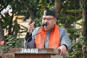 वेटरन दिवस की पूर्व संध्या पर आयोजित मिलन कार्यक्रम को संबोधित करते सैनिक कल्याण मंत्री गणेश जोशी।