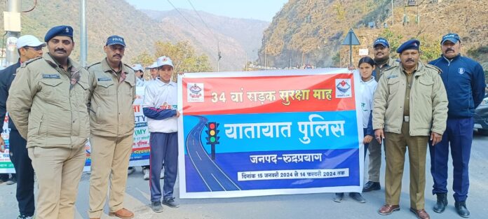 👉 पुलिस अधीक्षक रुद्रप्रयाग डॉ0 विशाखा अशोक भदाणे के निर्देशन में सड़क सुरक्षा माह के तृतीय दिवस में आज दिनांक 17.01.2024 को यातायात निरीक्षक श्री श्याम लाल के नेतृत्व में यातायात पुलिस रुद्रप्रयाग द्वारा आमजनमानस को यातायात नियमों के प्रति जागरुक किये जाने हेतु माई गोविन्द गिरी विद्या मन्दिर बेलनी, 108 स्वामी सचिदानन्द अटल उत्कृष्ट राजकीय इण्टर कॉलेज रुद्रप्रयाग की छात्राओं, राष्ट्रीय सेवा योजना की छात्रा कैडेटों तथा नेहरू युवा केन्द्र, रुद्रप्रयाग के साथ संयुक्त रूप से सड़क सुरक्षा माह के तहत आमजनमानस को यातायात नियमों की जानकारी देते हुए यातायात के नियमों का पालन करने, शराब पीकर वाहन न चलाने, बिना हेलमेट के दुपहिया वाहन संचालन न करने तथा ओवरस्पीडिंग न करने आदि के सम्बन्ध में जानकारी दी गयी। तत्पश्तात छात्राओं के साथ मिलकर कस्बा रुद्रप्रयाग में रैली निकालकर आमजनानस को सड़क सुरक्षा के प्रति जागरुक किया गया इस दौरान यातायात नियमों/संकेतो/चिन्हों आदि के पम्पलेट व पोस्टर आदि भी आमजनमानस तथा वाहन चालकों को वितरित किये गये हैं।