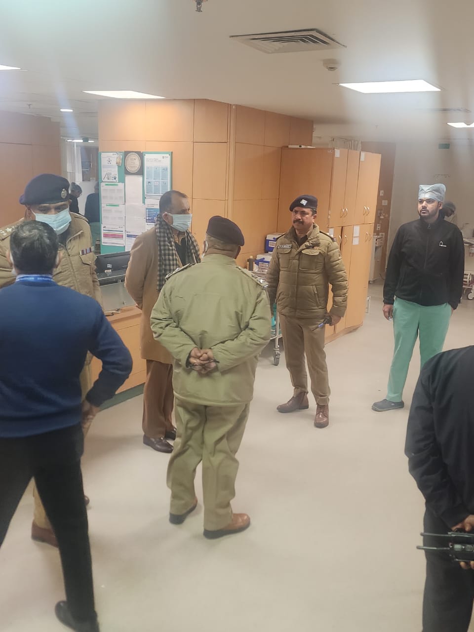 उपचार में लगे चिकित्सकों से वार्ता कर घायल दरोगा के स्वास्थ्य की वर्तमान स्थिती की ली जानकारी।