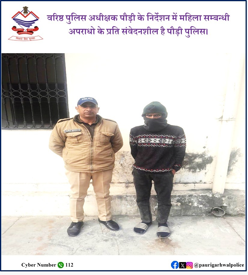 नाबालिग के साथ दुष्कर्म करने वाले आरोपी को पौड़ी पुलिस ने चंद घण्टो के भीतर किया गिरफ्तार।