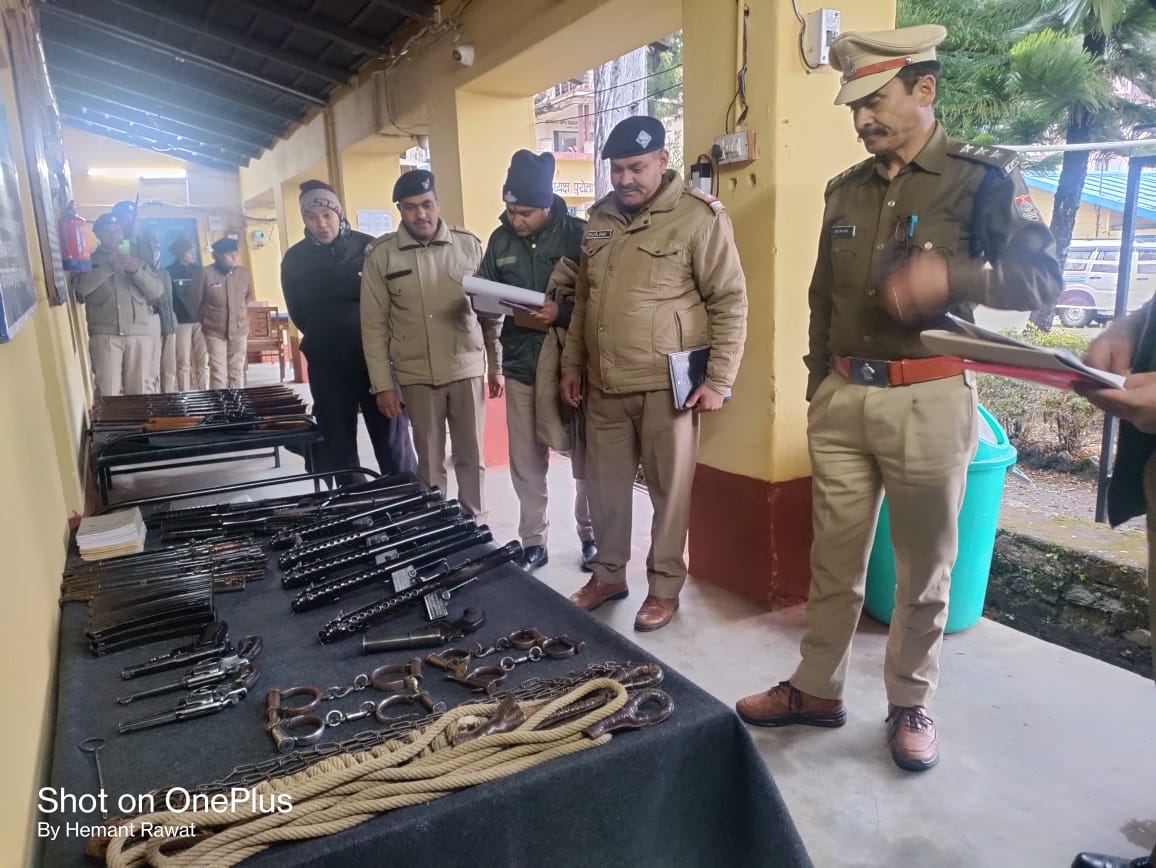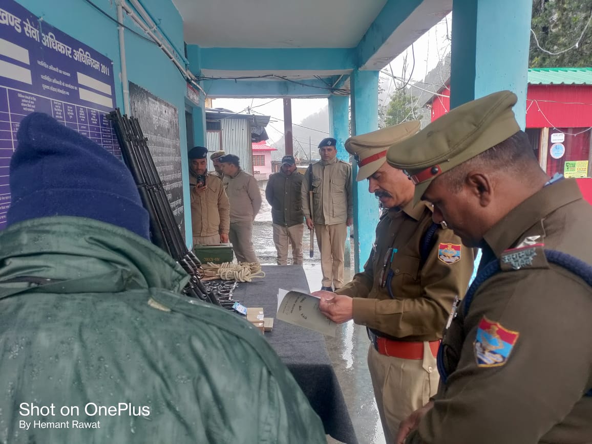 पुलिस उपाधीक्षक बड़कोट, श्री सुरेंद्र सिंह भण्डारी द्वारा कल 01/02/2024 को थाना पुरोला व मोरी का अर्द्धवार्षिक निरीक्षण किया गया। निरीक्षण के दौरान उनके द्वारा थानों पर आपदा उपकरणो तथा अस्लाहों का चैक कर पुलिस जवानों की वेपन हैंडलिंग जांची गयी। थाना व भोजनालय की साफ-सफाई का निरीक्षण करने के उपरांत उनके द्वारा थाना कार्यालय के रजिस्टर व पत्रावालियों का बारिकी से अवलोकन किया गया। रजिस्टर तथा पत्रावलियों को सही तरीके से मेंटेन करने के निर्देश दिये गये। इस दौरान उनके द्वारा पुलिस अधिकारी/कर्म0गणों का सम्मेलन लेकर सभी की ऑफिसियल व व्यक्तिगत समस्याएं पूछी गयी। इस दौरान उनके द्वारा SO मोरी एवं SO पुरोला को क्षेत्र में अवैध नशे की रोकथाम तथा वांछित/वारंटियों की गिरफ्तारी हेतु धरपकड़ अभियान चलाने के निर्देश दिये गये। आगामी लोकसभा सामान्य निर्वाचन-2024 के परिपेक्ष्य में उनके द्वारा सभी अधिकारी व कर्मचारियों को चुनाव को निष्पक्ष एवं शांतिपूर्ण तरीके से सम्पन्न करवाने के साथ चुनाव के दौरान अवैध/संदिग्ध गतिविधियों की रोकथाम तथा पुलिस चैकिंग के सम्बन्ध में प्रशिक्षण दिया गया।