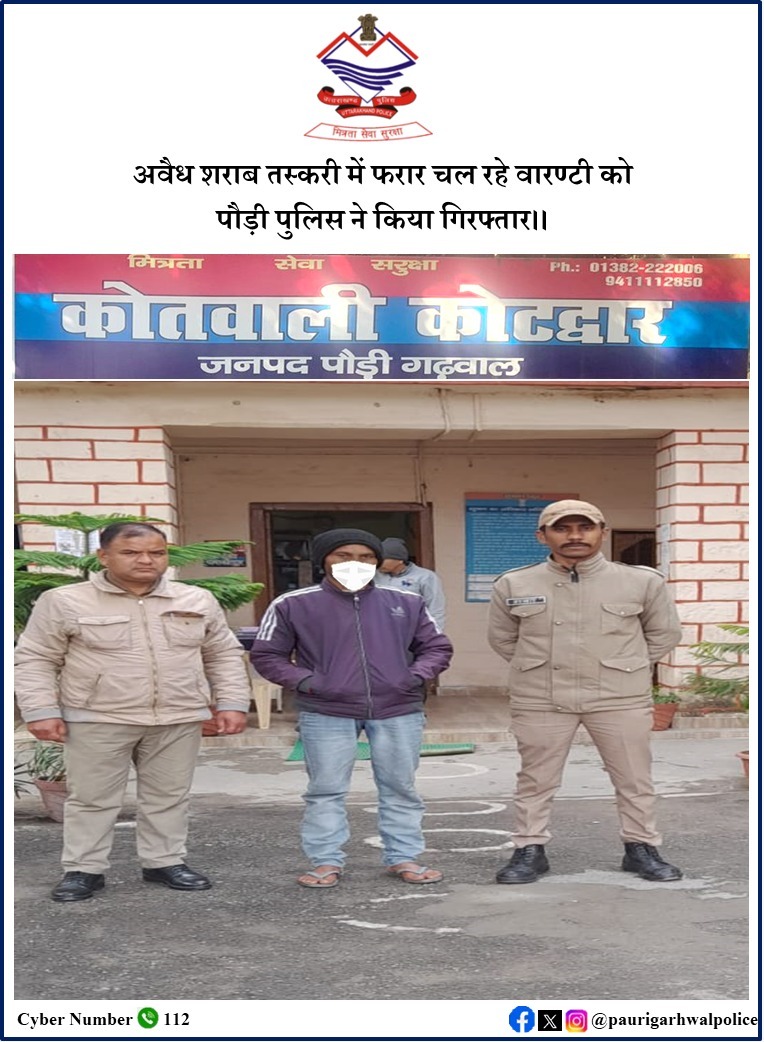 अवैध शराब तस्करी में फरार चल रहे वारण्टी को पौड़ी पुलिस ने किया गिरफ्तार।