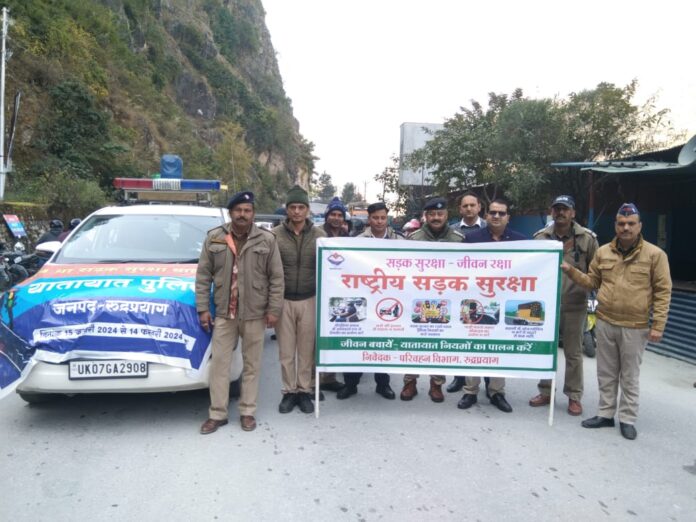 वर्तमान समय में 34 वां सड़क सुरक्षा माह मनाया जा रहा है, जिसमें जनपद रुद्रप्रयाग पुलिस के स्तर से पूरे माह निरन्तर आमजनमानस, वाहन चालकों तथा छात्र-छात्राओं को यातायात के प्रति जागरुक किया गया।