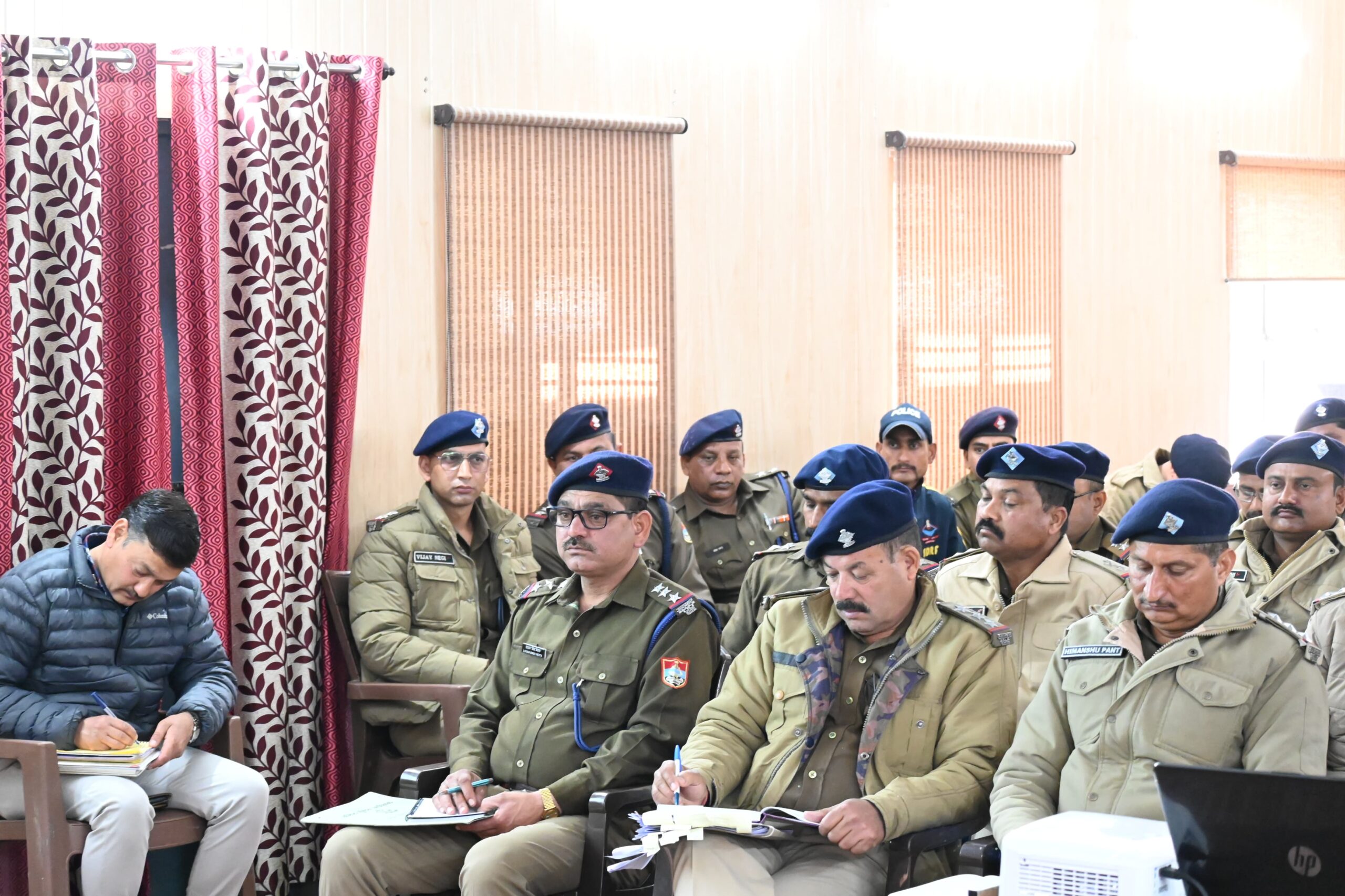 जनपद के समस्त थानों में दर्ज अपराधों, अभियुक्तों के विरुद्ध कार्यवाही एवं अपराधों के निस्तारण/लम्बित विवेचनाओं की समीक्षा की गयी। सम्बंधित सर्किल सीओ व थाना प्रभारियों को लम्बित विवेचनाओं का शीघ्र निस्तारण हेतु निर्देशित किया गया। मा0 न्यायालय में अभियुक्तों को सजा दिलाने के लिए गुणवत्तापूर्ण विवेचना किये जाने हेतु उपस्थित विवेचकों का मार्गदर्शन कर आवश्यक दिशा- निर्देश दिये गये। लम्बित आनलाईन/आँफलाईन शिकायतों का निस्तारण, लम्बित माल मुकदमाती के निस्तारण, समन/नोटिस व वारंटों की शत प्रतिशत तामीली, नशे के विरुद्ध प्रचलित अभियान में जीरो टाँलरेन्स की नीति अपनाकर मादक पदार्थों की तस्करी/बिक्री करने वालों पर कड़ी कार्यवाही, होटल/ढाबा, होमस्टे, स्पाँ सेंटर आदि की औचक चेकिंग, अपराधों की रोकथाम हेतु निरोधात्मक कार्यवाही/जनजागरुकता, नाबालिगों/महिलाओं के प्रति होने वाले अपराधों पर त्वरित कार्यवाही, अभियोगों में वांछित/पुरस्कार घोषित अपराधियों की गिरफ्तारी, साईबर फ्रॉड से सम्बन्धित मामलों में गंभीरता से शीघ्र कार्यवाही हेतु सख्त निर्देश दिए गये। महिला सुरक्षा के दृष्टिगत सभी थाना प्रभारी अपने-अपने थाना क्षेत्र के स्कूल/काँलेजों के खुलने व बंद होने के समय पुलिस गश्त भेजें।