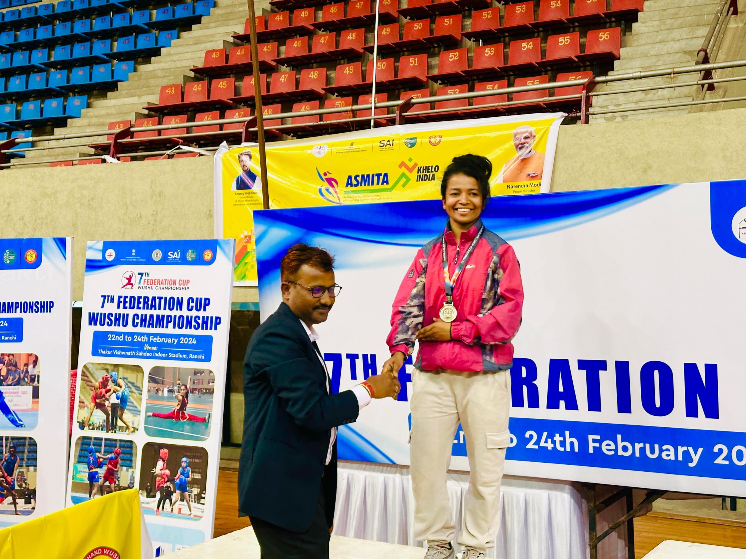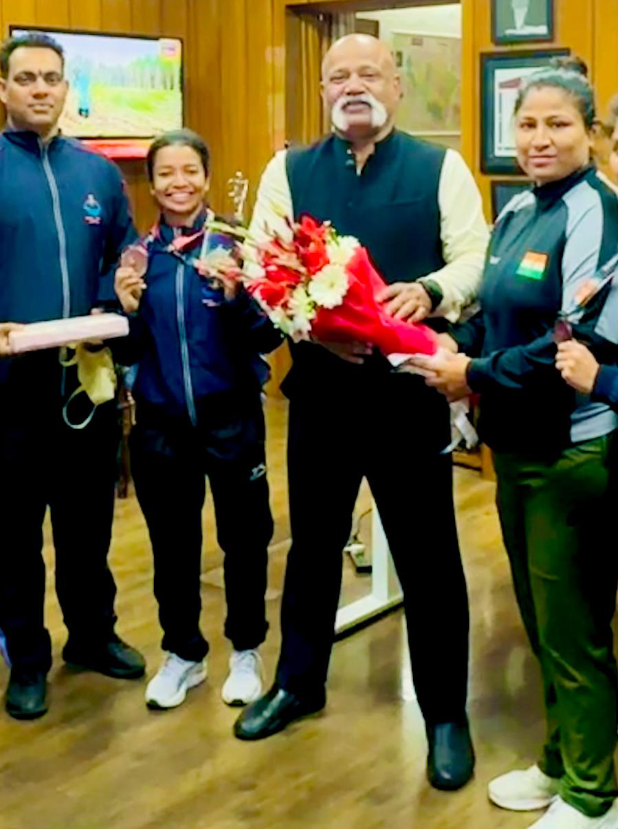 दिनॉक-29/02/2024 को ADG महोदय सर खेल सचिव द्वारा ज्योति को अपने खेल में अच्छा प्रदर्शन कर रजत और कांस्य पदक जीतने पर अपने कार्यालय में बुलाकर सम्मानित करते हुए उज्जवल भविष्य की कामना कर बधाई दी।
