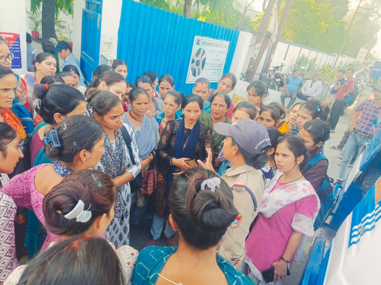 निर्गत निर्देशो के अनुपालन में आज दिनांक 07 जून 2024 को डोईवाला पुलिस द्वारा डोईवाला क्षेत्रान्तर्गत लालतप्पड औघोगिक क्षेत्र मे स्थित मोचिको शूज कम्पनी मे कार्यरत् महिलाओ के साथ में जन-जागरूकता कार्यक्रम का आयोजन किया गया। कार्यक्रम में करीब 70-80 महिलाओ द्वारा प्रतिभाग किया गया। आयोजित कार्यक्रम मे डोईवाला पुलिस द्वारा उपस्थित महिलाओ को महिला अपराधो के प्रति जागरूक किया गया तथा महिलाओ को उक्त सन्दर्भ मे उनके अधिकारो से विस्तृत रूप से अवगत कराया गया। उक्त के अतिरिक्त महिलाओ को गौरा एप्प के सम्बन्ध मे एप्प के संचालन जानकारी दी गयी तथा महिला सम्बन्धी हेल्प लाईन फोन नम्बरो से भी अवगत कराया गया, साथ ही कार्यक्रम के दौरान उपस्थित आमजन के साथ संवाद करते हुए उनके द्वारा पूछे गये प्रश्नों एवं आशंकाओ का निवारण किया गया