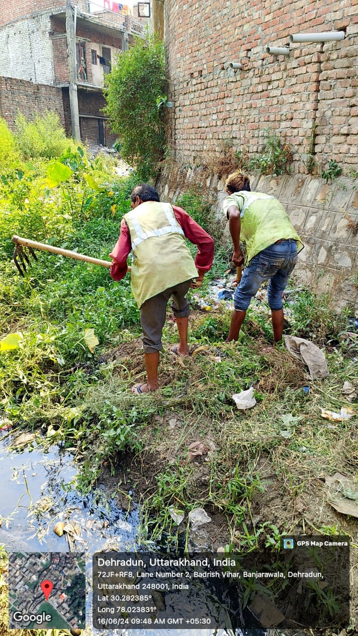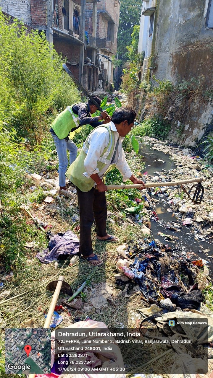 जिलाधिकारी के निर्देशों के अनुपालन में नगर निगम देहरादून द्वारा नालों एवं नालियों की सफाई निरंतर गतिमान है। आज नगर निगम क्षेत्रान्तर्गत ऋषिनगर चुना भट्टा, गोविन्दगढ से दुर्गा डेयरी, भण्डारी बाग से इन्द्रेश हास्टिपटल पुल, चन्द्रमणी शमशान घाट नाला, रक्षा विहार चुना भट्टा, बंजारावाला आजाद विहार आदि स्थानों पर उपकरण एवं पर्यावरण मित्रों के माध्यम से नालों एवं परिसरों की सफाई कार्य गतिमान है।
