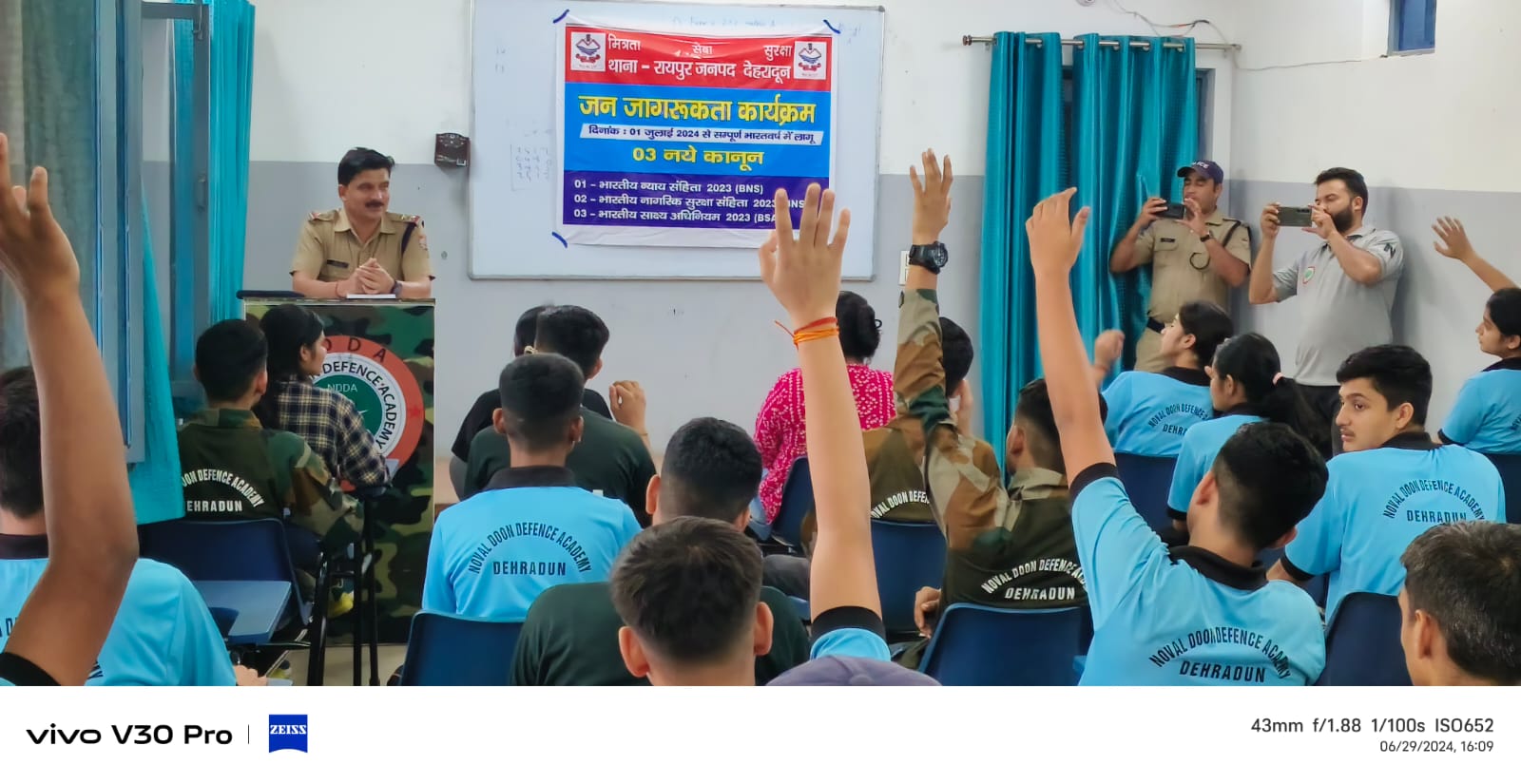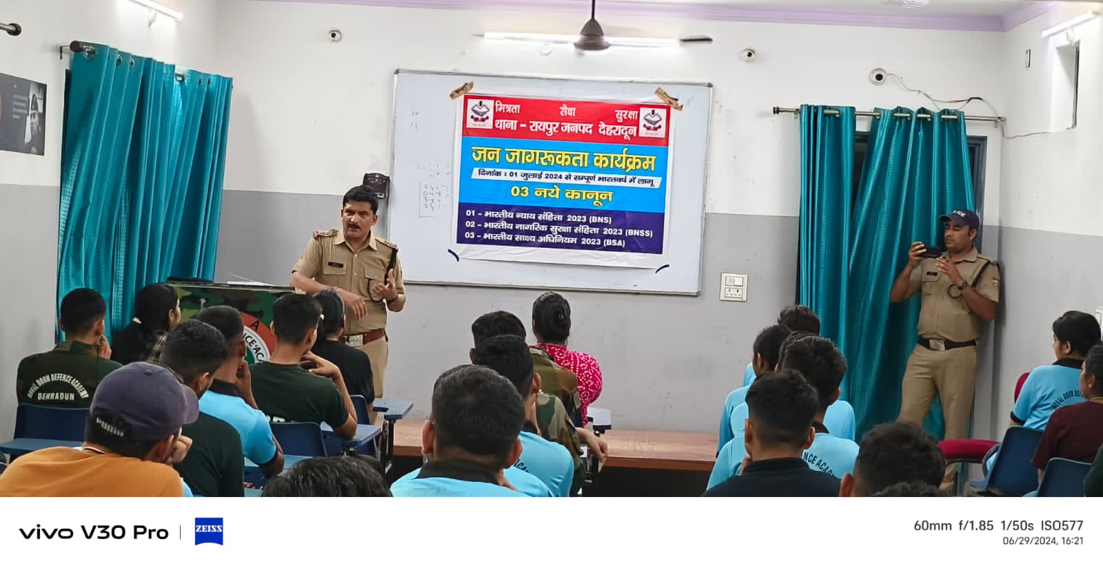 क्रियान्वयन के संबंध में आमजन को जागरुक किए जाने हेतु सभी अधीनस्थों को निर्देश निर्गत किये गय है। जिसके अनुपालन में थाना रायपुर पुलिस द्वारा सम्पूर्ण थाना क्षेत्र में ई रिक्शा में लाउड स्पीकर लगाकर कानून की जानकारी देते हुए प्रचार प्रसार किया गया। साथ ही नवल दून डिफेंस एकेडमी में छात्र छात्रों को नए कानून की जानकारी दी गई।