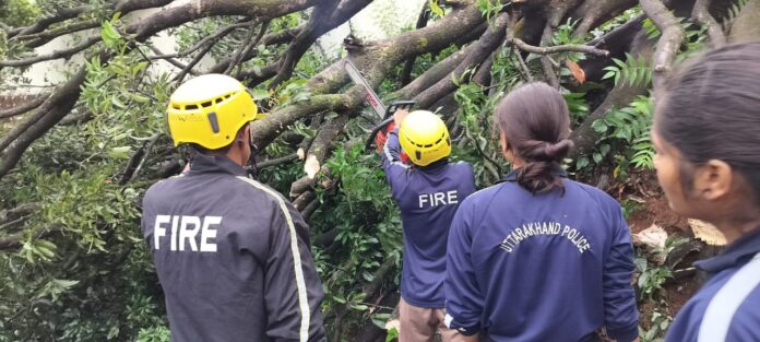 आज दिनांक 3/07/2024 को फायर स्टेशन बागेश्वर को केंद्रीय विद्यालय कठायतबाड़ा बागेश्वर के समीप सड़क मार्ग में पेड़ गिरने की सूचना प्राप्त हुई प्राप्त सूचना पर त्वरित कार्यवाही करते हुए प्रभारी अग्निशमन अधिकारी, FSSO गोपाल सिंह रावत के कुशल निर्देशन में फायर रेस्क्यू टीम घटना स्थल पहुंची। घटना स्थल पर आम का एक विशालकाय पेड़ सड़क पर गिरने से यातायात बाधित हुआ था। फायर रेस्क्यू टीम द्वारा त्वरित कार्यवाही करते हुए सड़क पर गिरे हुए पेड़ को वुडन कट्टर की मदद से छोटे –छोटे टुकड़ों में काटकर सड़क से किनारा किया गया तथा बाधित यातायात को पुनः सुचारू किया गया। उपस्थित लोगों द्वारा फायर टीम के कार्य की सराहना करते हुए आभार व्यक्त किया गया।