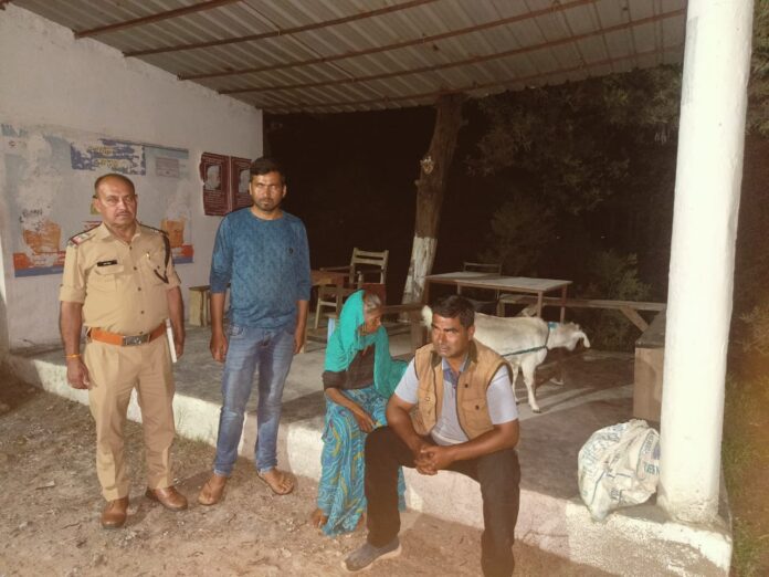दिनांक 10/07/2024 को समय 21.30 बजे थाना काण्डा में डायल 112 के माध्यम से सूचना प्राप्त हुई की ग्राम सभा दिगोली तोक मचियाकोट में एक अज्ञात महिला एक बकरी के साथ अकेले रोड के किनारे पर बैठी है। उक्त सूचना पर कॉलर से संपर्क करने के पश्चात थाना कांडा पुलिस बल मौके पर गई तो उक्त अज्ञात महिला एक बकरी के साथ रोड के किनारे में बैठी थी जो मानसिक रूप से अस्वस्थ लग रही थी। बुजुर्ग महिला से नाम पता पूछा गया तो उनके द्वारा कोई जवाब नहीं दिया गया। जिस संबंध में थाना कांडा पुलिस बल द्वारा तत्परता से ग्राम प्रधान/ ग्राम प्रहरी के व्हाट्सएप ग्रुप में उक्त महिला की फोटो का प्रचार प्रसार किया गया तो नवीन सिंह पुत्र कुंवर सिंह निवासी जलमानी पोस्ट स्याकोट थाना कपकोट जिला बागेश्वर द्वारा बताया गया कि जिस फोटो का आप लोग व्हाट्सएप ग्रुप/सोशल मीडिया के माध्यम से प्रचार प्रसार कर रहे हैं वह मेरी माता जी श्रीमती लीला देवी हैं जो मानसिक रुप से अस्वस्थ हैं और घर से इधर-उधर चली जाती हैं। हमारे द्वारा माता जी की ढूंढ खोज की जा रही थी।