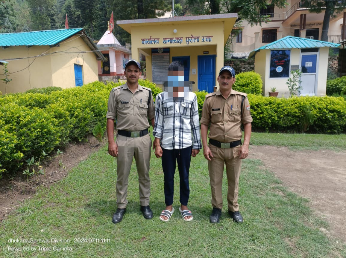 गत 08 जुलाई 2024 को थाना पुरोला क्षेत्र में एक नाबालिग घर से कहीं चले जाने व वापस घर न आने के सम्बन्ध में कल परिजनों की तहरीर पर थाना पुरोला पर अज्ञात के विरुद्ध भारतीय न्याय संहिता की धारा 137(2) के तहत अभियोग पंजीकृत किया गया। पुरोला पुलिस व एसओजी की टीम द्वारा उक्त मामले में त्वरित कार्यवाही करते हुये प्रकाश में आये युवक राहुल कुमार (21 वर्ष) को मात्र 18 घण्टे के भीतर आज 11.07.2024 को डामटा से गिरफ्तार तथा नाबालिगा को बरामद किया गया है। बयान/साक्ष्य के आधार पर अभियोग में धारा 64 BNS व ¾ पोक्सों अधिनियम की बढोतरी की गयी है। अग्रिम कार्यवाही जारी है।