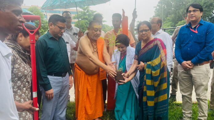 एम्स निदेशक कार्यालय के निकट शंकराचार्य राजराजेश्वरानंद महाराज जी द्वारा नीम का पौधा रोपते समय उन्होंने संस्थान द्वारा आयोजित वृक्षारोपण कार्यक्रम की सराहना की और शुभकामनाएं देते हुए कहा कि धरती में पर्यावरण संतुलन के लिए जरूरी है कि लोक परम्परा का निर्वाह करते हुए समाज का प्रत्येक व्यक्ति वृक्षारोपण करे। उन्होंने कहा कि वृक्षों से प्राणवायु प्राप्त होती है। धरती पर जब वृक्ष होंगे, तभी जीवन बचेगा।