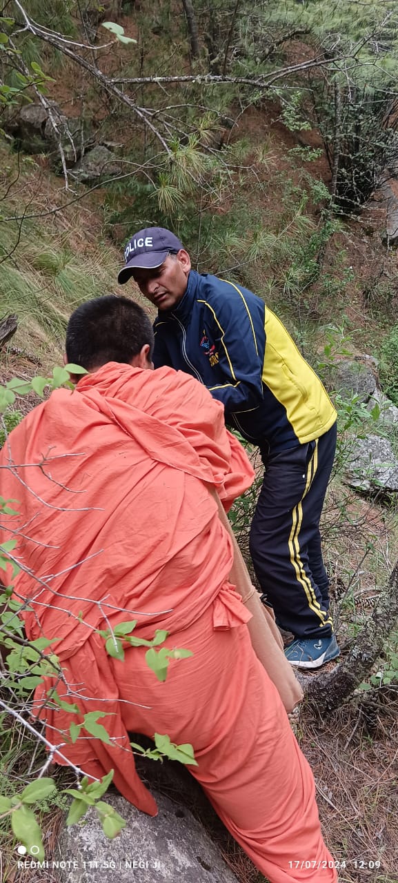 आज दिनांक 17.07.2024 को 112 के माध्यम से हरिद्वार निवासी बलराम गिरी निरंजन देव के गंगोत्री धाम जंगल में रास्ता भटकने की सूचना प्राप्त हुयी, सूचना पर तुरंत चौकी गंगोत्री पुलिस व एसडीआरएफ की संयुक्त टीम तलाश हेतु जंगल की ओर गयी, टीम द्वारा उक्त व्यक्ति को तलाश कर सकुशल ईशावाश्य आश्रम गंगोत्री पहुंचाया गया।