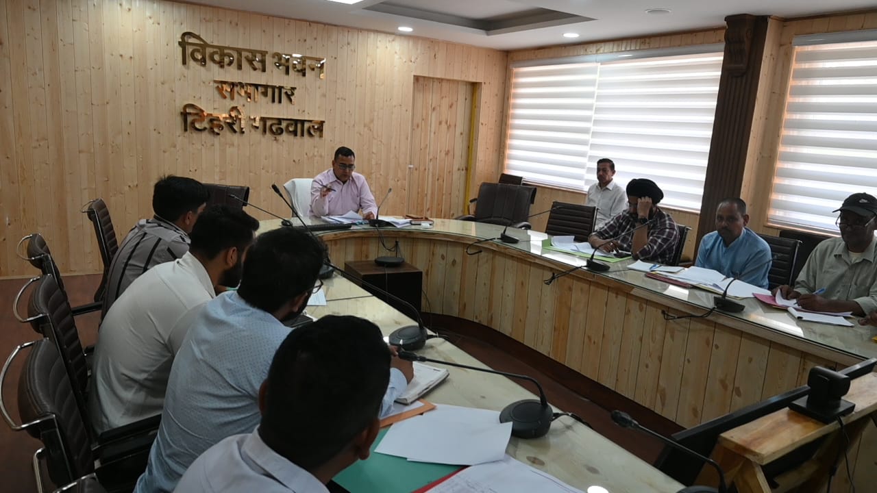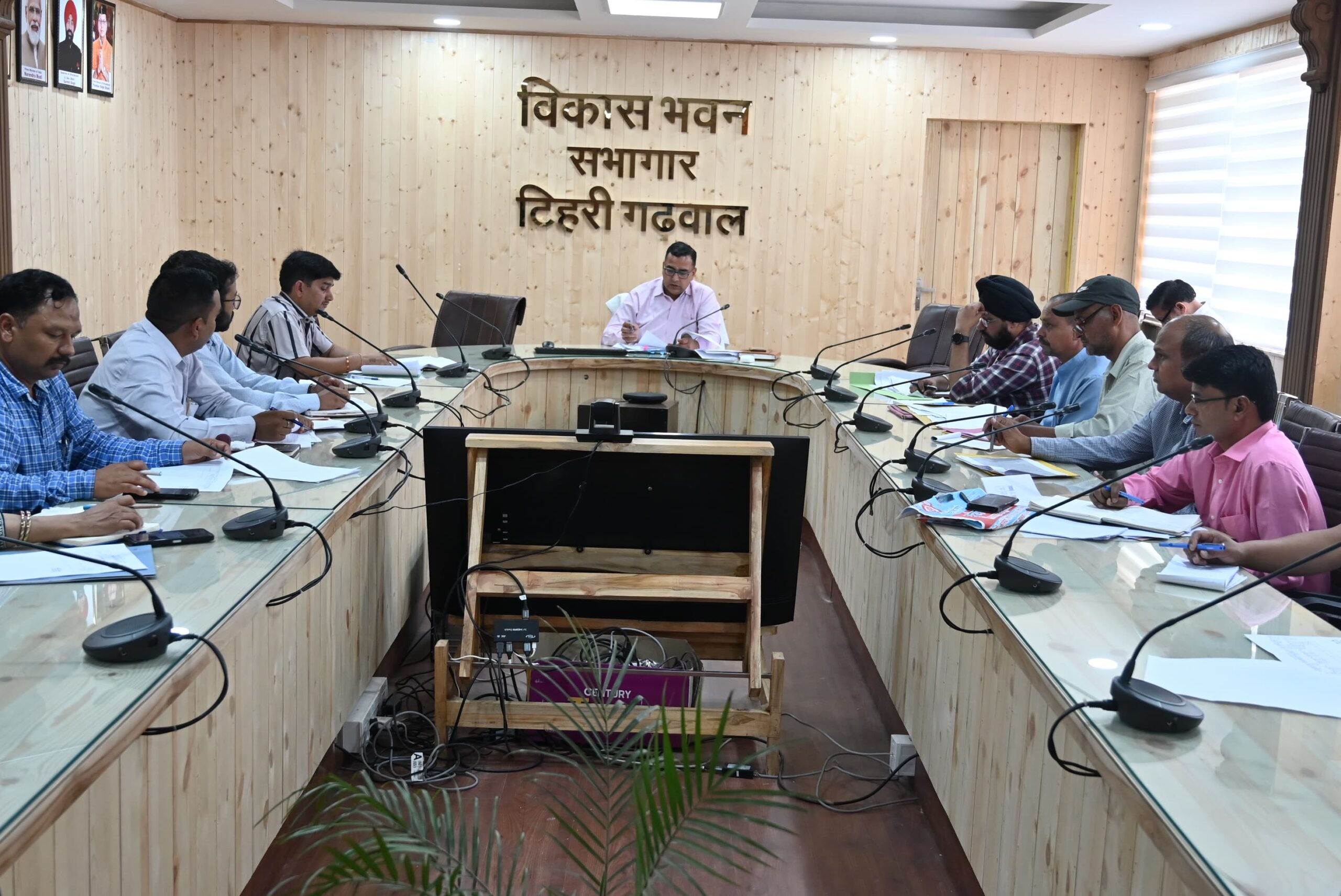 विकास भवन सभागार नई टिहरी में आयोजित बैठक में जनपद में आवास (शहरी) विकास विभाग एवं नगर-निकायों के माध्यम से संचालित योजना/कार्यक्रमों की समीक्षा की गई।