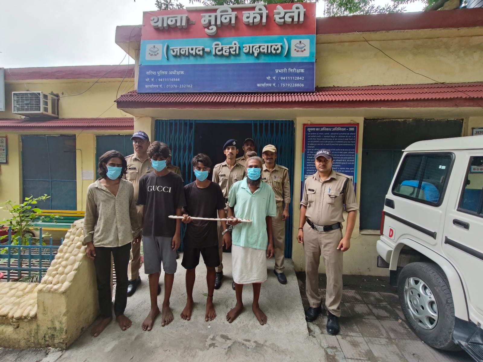 दिनांक 20.07.2024 को राहुल गुप्ता पुत्र सतीश कुमार गुप्ता निवासी निकट एसएसबी कैंप कैलाश गेट, थाना मुनि की रेती जनपद टिहरी गढ़वाल द्वारा थाना मुनि की रेती पर प्रार्थना पत्र दिया गया कि उसके साथ जानकी पुल पार्किंग में काम करने वाले बालम सिंह बिष्ट पुत्र कुंवर सिंह बिष्ट निवासी मित्र विहार, ढाल वाला थाना मुनि की रेती, अजय पुत्र हरिओम निवासी कैलाश गेट थाना मुनि की रेती तथा सुभाष पुत्र पृथ्वी ढोंडियाल निवासी कैलाश गेट, थाना मुनि की रेती के साथ वाहन संख्या HR 10AR – 9950 ट्रैक्टर का पार्किंग शुल्क लेने को लेकर ट्रैक्टर ट्राली में सवार लोगों द्वारा उनके साथ गाली गलौज व मारपीट की गई तथा उनके साथ काम करने वाले बालम सिंह बिष्ट के साथ धारदार हथियार से जानलेवा हमला किया गया जिससे उनके सर पर गंभीर चोट आई है। उनका इलाज एम्स अस्पताल में चल रहा है। उक्त प्रार्थना पत्र के आधार पर थाना मुनि की रेती पर मु0अ0सं0:- 93/ 2024 धारा 109,115(2),191(3) 351(2),351 (3) 352 BNS पंजीकृत किया गया। जिसकी विवेचना उपनिरीक्षक श्री कमल कुमार थाना मुनि की रेती द्वारा संपादित की जा रही है। विवेचना से महंत सौरभ गिरी नागा बाबा पुत्र स्वर्गीय अष्ट कौशल महंत आजाद गिरी निवासी गढ़ी ब्राह्मण थाना सदर जिला सोनीपत हरियाणा (उम्र 40 वर्ष), दिव्य उर्फ दीपू पुत्र ओमप्रकाश निवासी उपरोक्त (उम्र 19 वर्ष) रजत पुत्र विनोद कुमार निवासी उपरोक्त (उम्र 19 वर्ष) अरुण पुत्र संदीप निवासी उपरोक्त (उम्र 18 वर्ष) में का नाम प्रकाश में आया। प्रकाश में आए व्यक्ति कावड़ लेने/जल लेने हरिद्वार आए थे तथा नीलकंठ मंदिर दर्शन से आने के उपरांत जानकी पुल पार्किंग में पार्किंग शुल्क को लेकर पार्किंग वालों के साथ मारपीट कर उन पर जानलेवा हमला किया गया। उपरोक्त अभियुक्त गणों को माचिस फैक्ट्री के पास से गिरफ्तार किया गया। जिनके कब्जे से घटना में प्रयुक्त धारदार तलवार भी बरामद की गई। तथा घटना में प्रयुक्त वाहन को कब्जे पुलिस लिया गया। गिरफतार अभि0 गण को मा0न्यायालय में पेश किया जा रहा है।