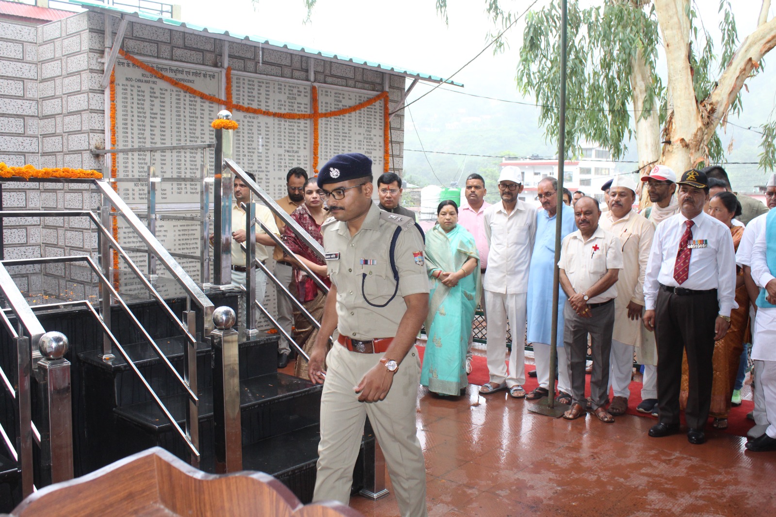 आज दिनांक- 26/07/2024 को कारगिल विजय दिवस के अवसर पर बागेश्वर तहसील परिसर में स्थित शहीद स्मारक में कारगिल युद्ध में देश की रक्षा के लिए अपने प्राणों की आहुति देने वाले भारत मां के वीर शहीदों को अक्षय प्रहलाद कोण्डे(IPS), पुलिस अधीक्षक बागेश्वर द्वारा पुष्प अर्पित कर श्रद्धांजली दी गई।