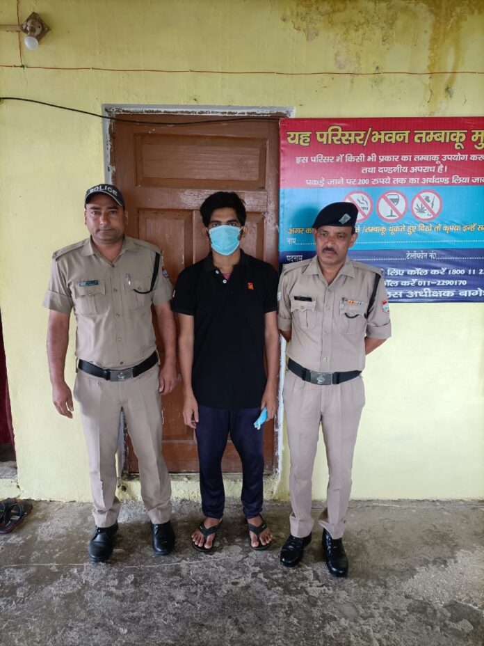 पंजीकृत अभियोग के तहत मामले की गम्भीरता को देखते हुए पुलिस अधीक्षक बागेश्वर के निर्देशन में व पुलिस उपाधीक्षक बागेश्वर के पर्यवेक्षण में पुलिस टीम द्वारा आज दिनांक 27.7.2024 को उक्त अभियोग से संबंधित वांछित अभियुक्त आदित्य सिन्हा पुत्र श्याम कुमार स्थाई निवासी ग्राम पोस्ट नानंद थाना सिलाव जिला नालंदा बिहार , हाल निवासी ग्राम पोस्ट काफली रीमा थाना कपकोट जनपद बागेश्वर उम्र 25 वर्ष को धारा – 409 IPC के तहत चौकी रीमा पुलिस द्वारा काफली से गिरफ्तार कर माननीय न्यायालय के समक्ष पेश किया जा रहा है।