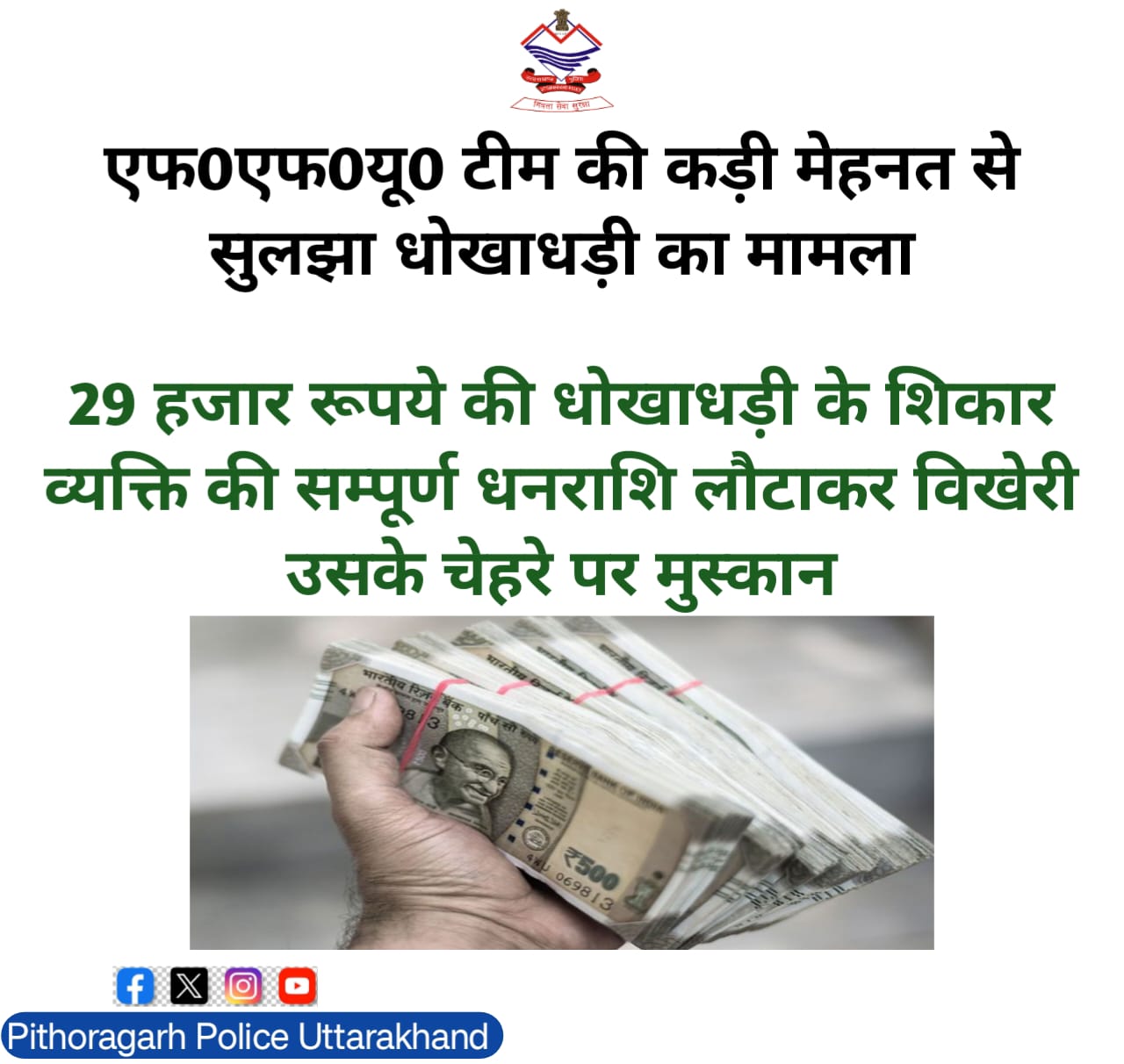 एफ0एफ0यू0 टीम की कड़ी मेहनत से सुलझा धोखाधड़ी का मामला