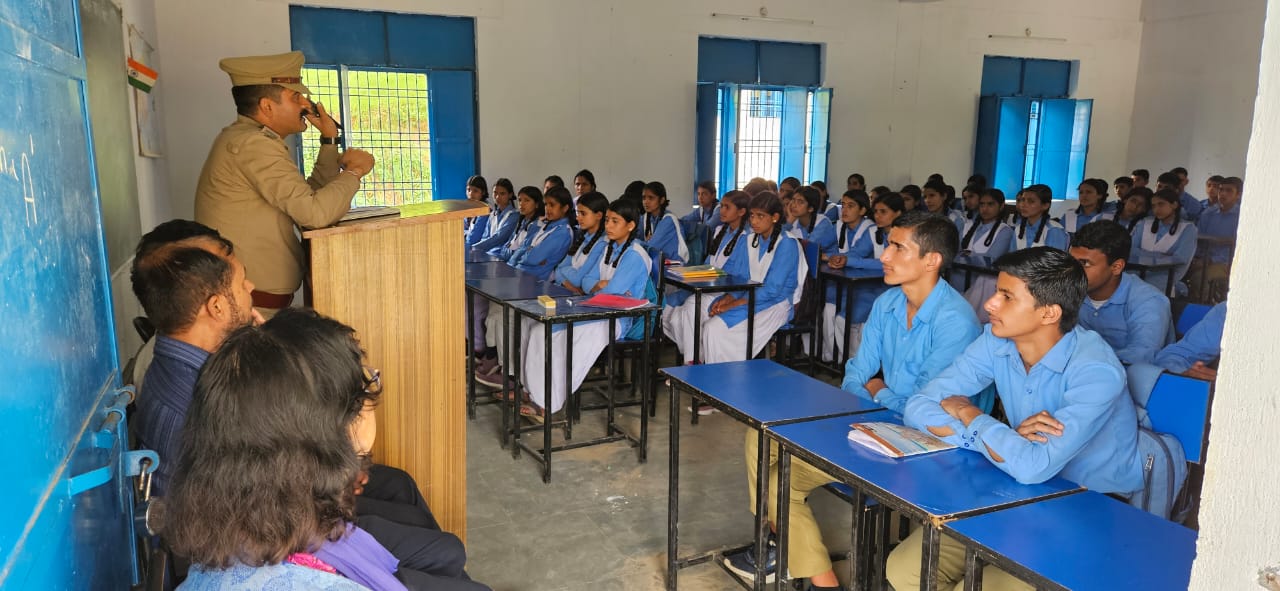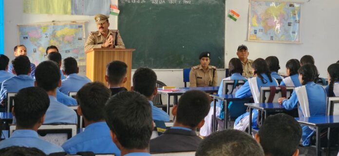 उ0नि0 ललित पाण्डेय, कोतवाली चम्पावत द्वारा किया गया राजकीय इण्टर कालेज, धौन के छात्र-छात्राओं को जागरूक