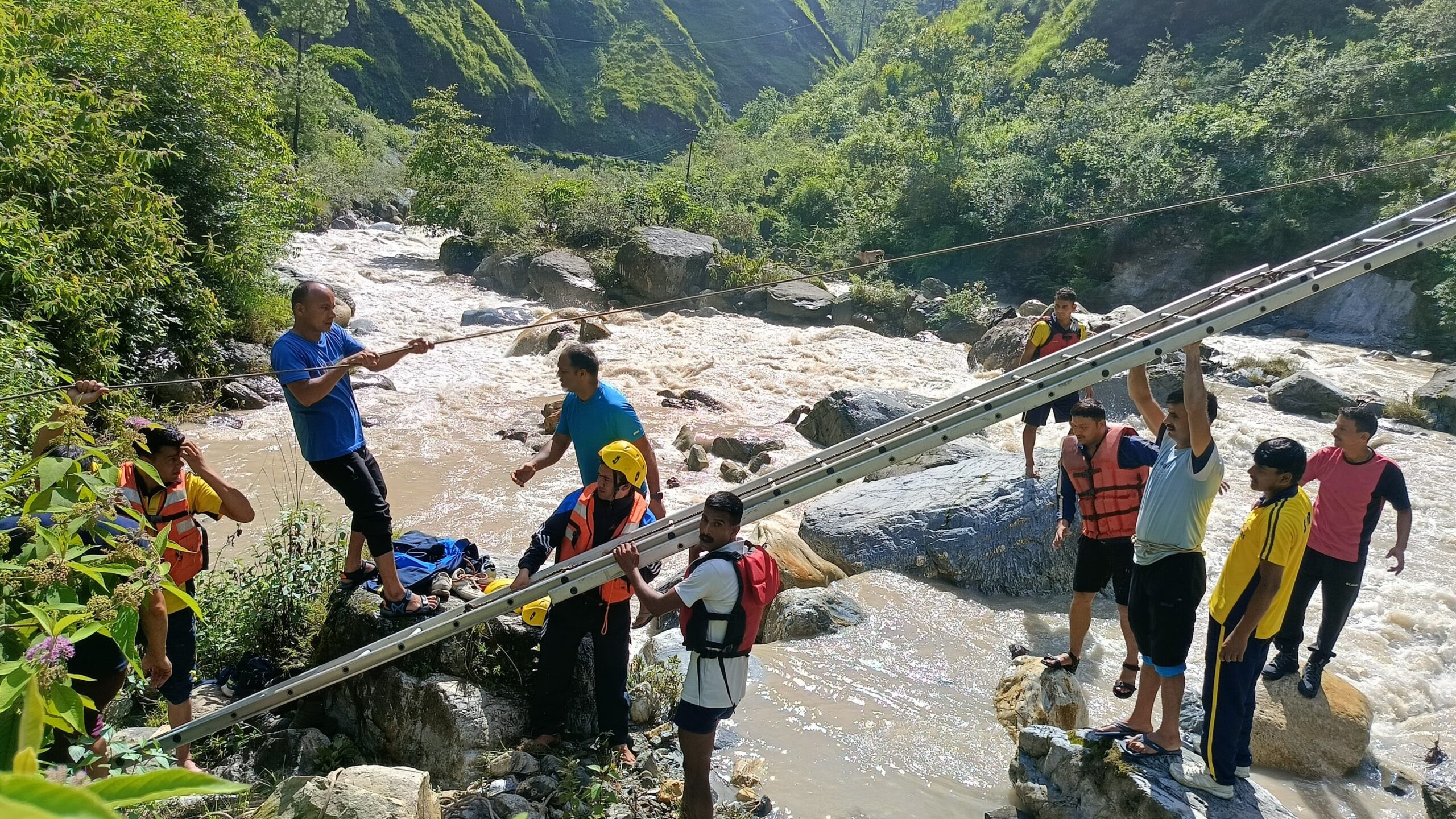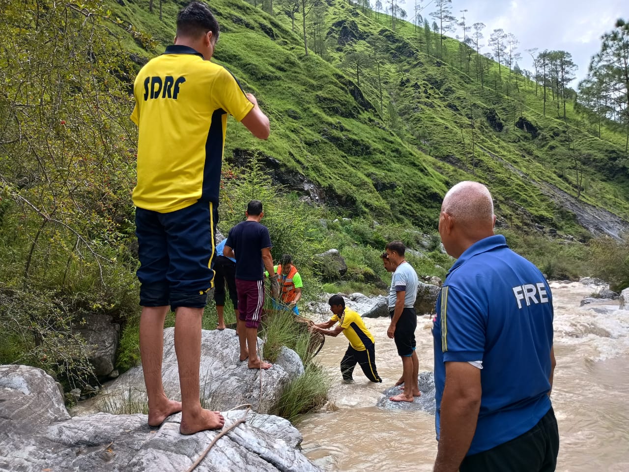 दिनांक 04-08-2024 को SDRF कपकोट को थाना कपकोट के माध्यम से सूचना प्राप्त हुई कि परमेटी गांव के पास 1 गौवंश नदी के दूसरी तरफ फंस गया है। प्राप्त सूचना पर त्वरित कार्यवाही करते हुए SDRF टीम, फायर रेस्क्यू टीम व आपदा प्रबंधन की संयुक्त टीम घटना स्थल पहुंची और रैस्क्यू अभियान चलाया गया परन्तु नदी का जल स्तर अधिक होने के कारण रेस्क्यू रोकना पडा़। आज दिनांक 05/08/2024 को टीम द्वारा पुनः घटना स्थल जाकर रैस्क्यू चलाया और सीडी़ व रोप की मदद से नदी के दूसरे छोर तक पहुंच बनाकर गौवंश को नदी के इस तरफ लाया गया तथा सही हालत में सुरक्षित स्थान पर पहुंचाया गया।