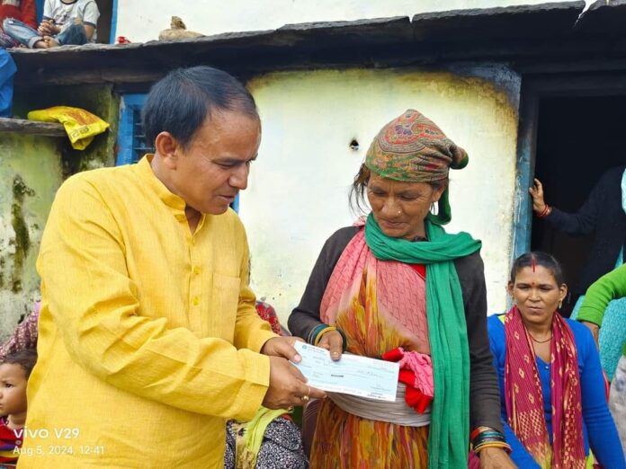 थलीसैंण क्षेत्र में आपदा प्रभावित परिवारों से मिले डॉ. धन सिंह रावत, आपदाग्रस्त क्षेत्र का कार्य जल्द प्रारंभ करने के दिये निर्देश.कैबिनेट मंत्री डॉ. धन सिंह रावत ने जनपद पौड़ी के अंतर्गत विकासखंड थलीसैंण क्षेत्र के जैंती डांग व जैंती चक आपदाग्रस्त क्षेत्र का निरीक्षण किया। इस दौरान उन्होंने प्रभावित परिवारों से मुलाकात कर आपदा प्रभावितों को चैक वितरित किये।