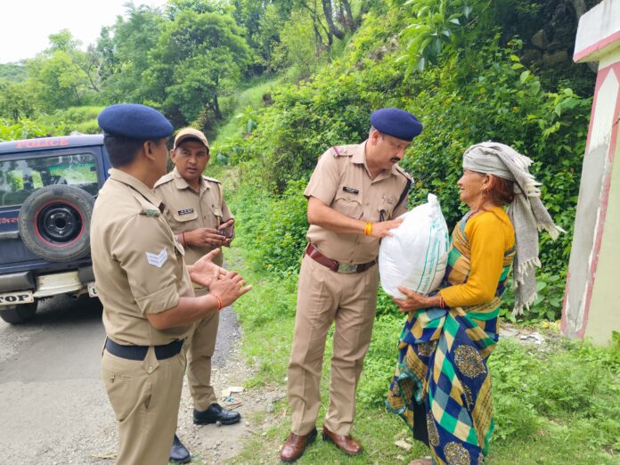 जिसके क्रम में थाना रिखणीखाल पुलिस टीम द्वारा थाने के दूरस्थ गांव में जाकर बुजुर्ग, गरीब व असहाय लोगों को राशन (आटा, चावल, तेल, मसाले आदि) वितरित किए गए साथ ही किसी भी प्रकार की मदद हेतु अपने मोबाइल नंबर भी बुजुर्गों को दिए गए। जनपद पौड़ी पुलिस द्वारा गांव गांव में जाकर बुजुर्गों से कुशलता पूछने का अभियान लगातार जारी है