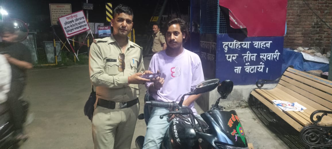 यातायात मोबाईल ड्युटी में नियुक्त का0 राजेश जोशी को ड्यूटी के दौरान कोतवाली क्षेत्रांतर्गत सरयू पुल पर एक बैग व भराड़ी स्टैण्ड पर वन प्लस का एक मोबाईल पडा़ हुआ मिला जिसको उन्होनें अपने पास रखा व उक्त बैग और मोबाइल स्वामी की ढूंढ खोज शुरु करते हुए काफी प्रयासों के बाद बैग और फोन स्वामी का पता लगने पर पुलिस कर्मी ने बैग व फोन के (अलग-अलग) मालिको से सभी औपचारिकताएं पूरी करने के बाद बैग व फोन को उसके मालिक के सुपुर्द किया गया। बैग व फोन को वापिस पाकर संबंधित मालिक बहुत प्रसन्न हुए और उसने इसके लिए पुलिसकर्मी का दिल से धन्यवाद किया।