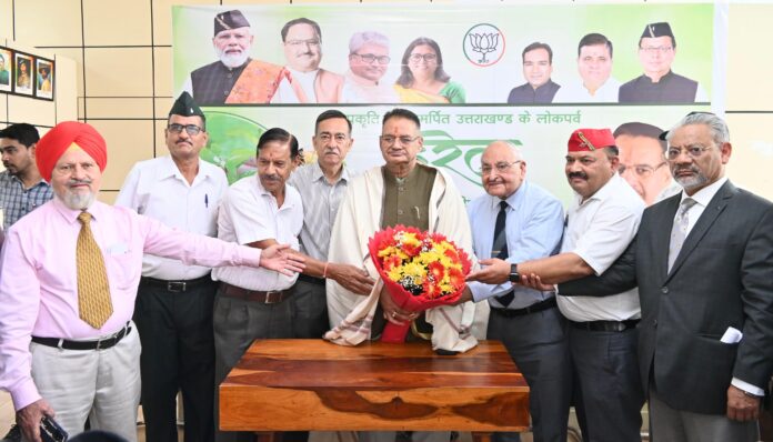 पूर्व सैनिकों एवं शहीद आश्रितों को सम्मान दिये जाने पर सैनिक कल्याण मंत्री गणेश जोशी का धन्यवाद करते पूर्व सैनिक संगठन के पदाधिकारीगण।