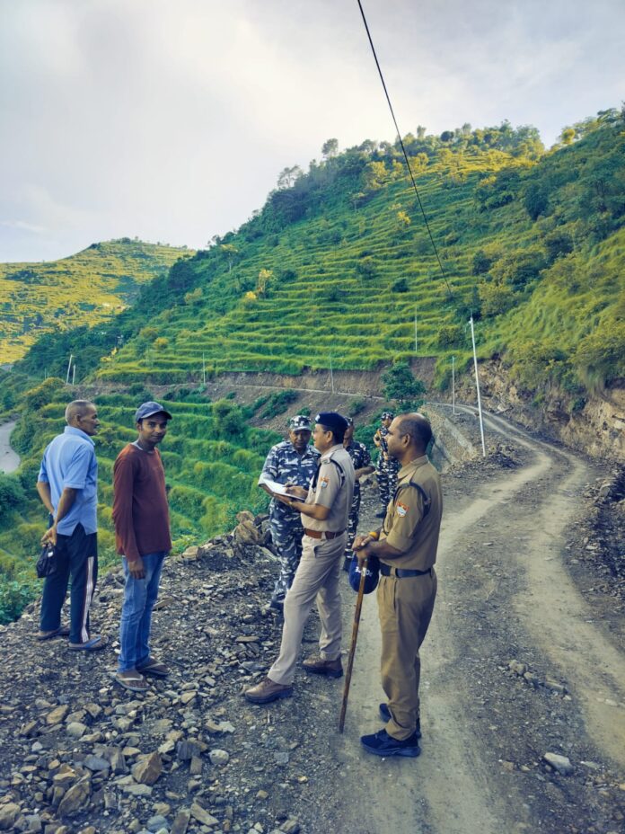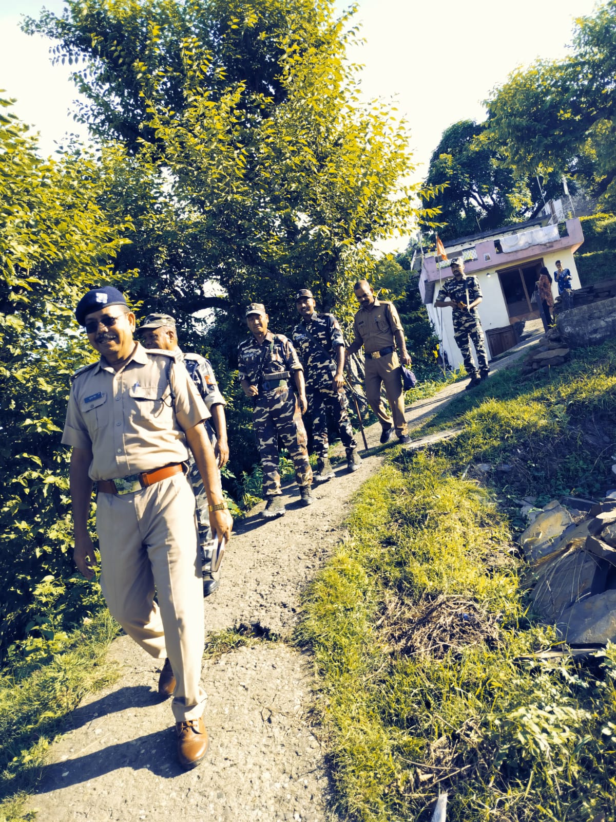 उक्त क्रम में आज दिनांक 13-08-2024 को हेमन्त सिंह कठेत- थानाध्यक्ष कोतवाली पंचेश्वर के निर्देशानुसार ASI – सुभाष राणा- प्रभारी चौकी मंडलक व पुलिस टीम द्वारा थाना कोतवाली पंचेश्वर क्षेत्रअंतर्गत सीमावर्ती ग्राम सभा बगोटी में आतंरिक सुरक्षा के दृष्टिगत आसामाजिक व आवांछित तत्वों पर सतर्क दृष्टि रखे जाने, आसामाजिक व आवांछित गतिविधियों पर प्रभावी रुप से अंकुश लगाये जाने, बाहरी जनपदों व राज्यों से आये /अपरिचित व्यक्तियों के सत्यापन हेतु सशस्त्र सीमा बल(SSB) के साथ संयुक्त सघन गश्त व चेकिंग अभियान संचालित किया गया संयुक्त चेकिंग के दौरान स्थानीय ग्रामीणों को सुरक्षा, क़ानून व्यवस्था के दृष्टिगत आवश्यक दिशा निर्देश दिए गए व ग्रामसभा क्षेत्र में निवासरत अपरिचित व्यक्तियों के सत्यापन भी किया गया।