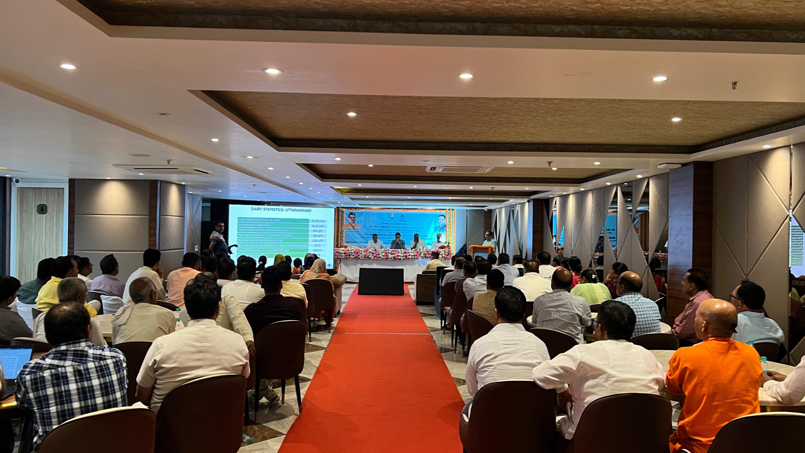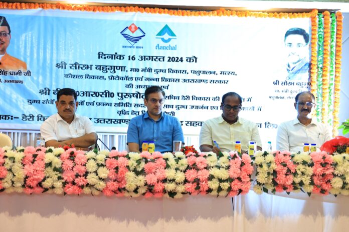 मा० मंत्री जी, पशुपालन, मत्स्य, दुग्ध विकास, गन्ना विकास एवं चीनी उद्योग, प्रोटोकोल एवं कौशल विकास एवं सेवायोजन, उत्तराखण्ड सरकार की अध्यक्षता में आज दिनांक 16.08.2024 को दुग्ध उपार्जन एवं विपणन में वृद्धि करने तथा दुग्ध संघों के ओवर हैड व्ययों में कमी करने के उददेश्य से देहरादून के सहस्त्रधारा रोड स्थित होटल सफायर में एक समीक्षा बैठक / गोष्ठी आयोजित की गयी जिसमे डा० बी०वी०आर०सी०पुरूषोत्तम, सचिव, डेरी, अपर सचिव, संयुक्त सचिव, डेरी, उत्तराखण्ड शासन, प्रदेश अन्तर्गत संचालित समस्त दुग्ध संघों के सभापति, उपसभापति एवं प्रबन्ध समिति के सदस्य, प्रबन्ध निदेशक, यू०सी०डी०एफ०, प्रशासक यू०सी०डी०एफ०, प्रदेश के समस्त दुग्ध संघों के प्रबन्धक / प्रधान प्रबन्धक तथा विभागीय अधिकारियों द्वारा प्रतिभाग किया गया।