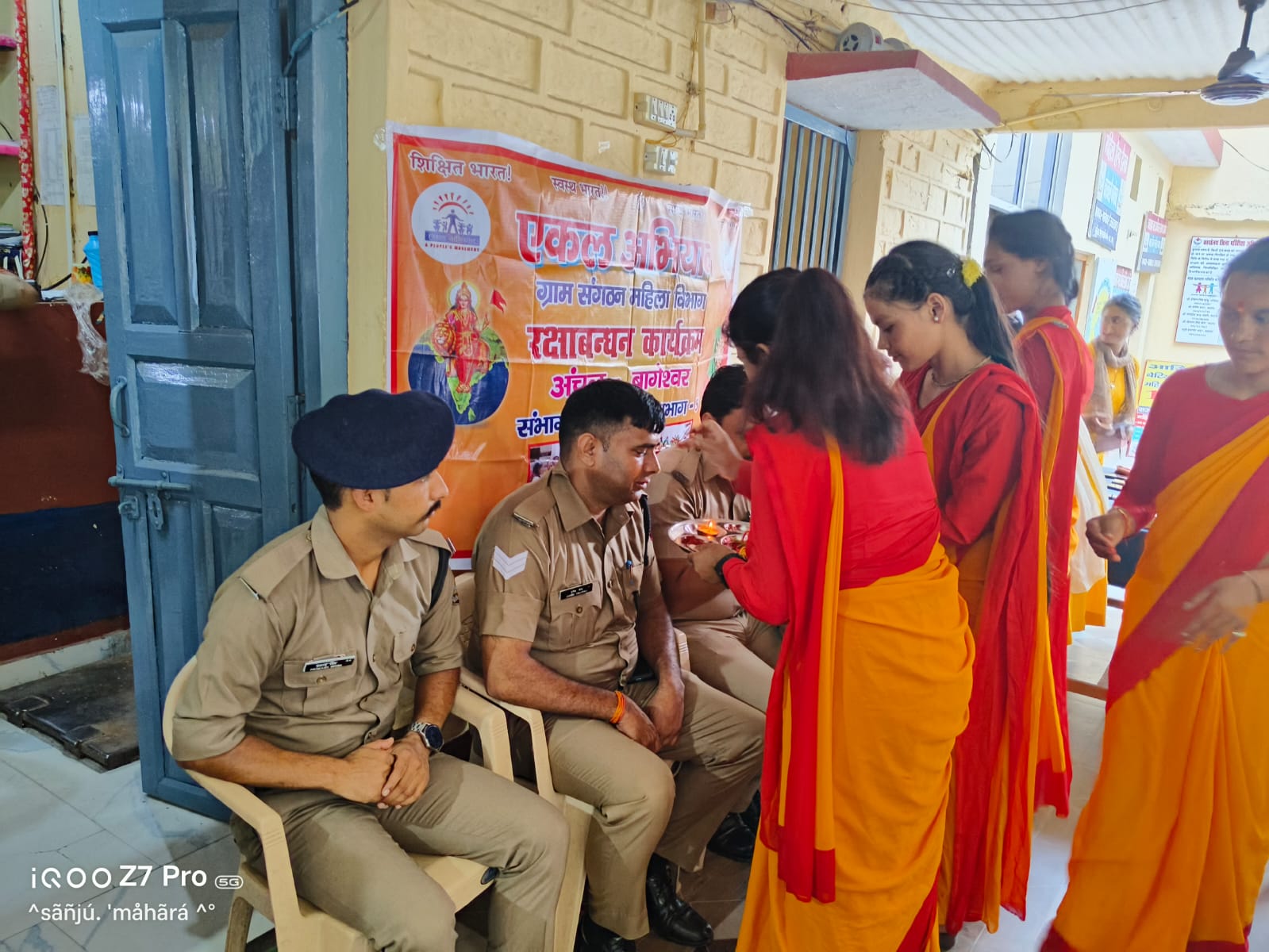 दिनांक- 18.8.2024 को एकल शिक्षा अभियान संगठन, बागेश्वर की महिलाओं ने कोतवाली बागेश्वर में उपस्थित होकर प्रभारी निरीक्षक कोतवाली श्री कैलाश सिंह नेगी और समस्त पुलिस स्टॉफ की कलाई में राखी बांधकर उनके प्रति सम्मान और सुरक्षा के प्रति आभार व्यक्त किया साथ ही उनकी दीर्द्यायु की कामना की गयी। यह पहल सामाजिक सौहार्द और पुलिस-समुदाय के बीच अच्छे रिश्तों को मजबूत करने की दिशा में एक महत्वपूर्ण कदम है।