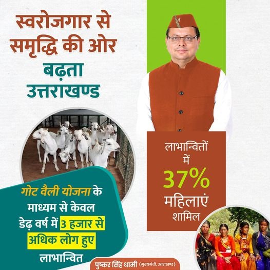 उत्तराखंड के मुख्यमंत्री पुष्कर सिंह धामी ने हाल ही में प्रदेश में पशुपालकों के आर्थिक सशक्तिकरण के लिए ‘गोट वैली योजना’ की शुरुआत की है। इस योजना के तहत 3000 से अधिक पशुपालक लाभान्वित हो रहे हैं और अपनी आर्थिक स्थिति को मजबूत कर रहे हैं। मुख्यमंत्री ने बताया कि राज्य सरकार इस योजना के माध्यम से ग्रामीण क्षेत्रों में पशुपालन को बढ़ावा दे रही है, जिससे स्थानीय लोगों की आर्थिकी में सुधार हो रहा है।
