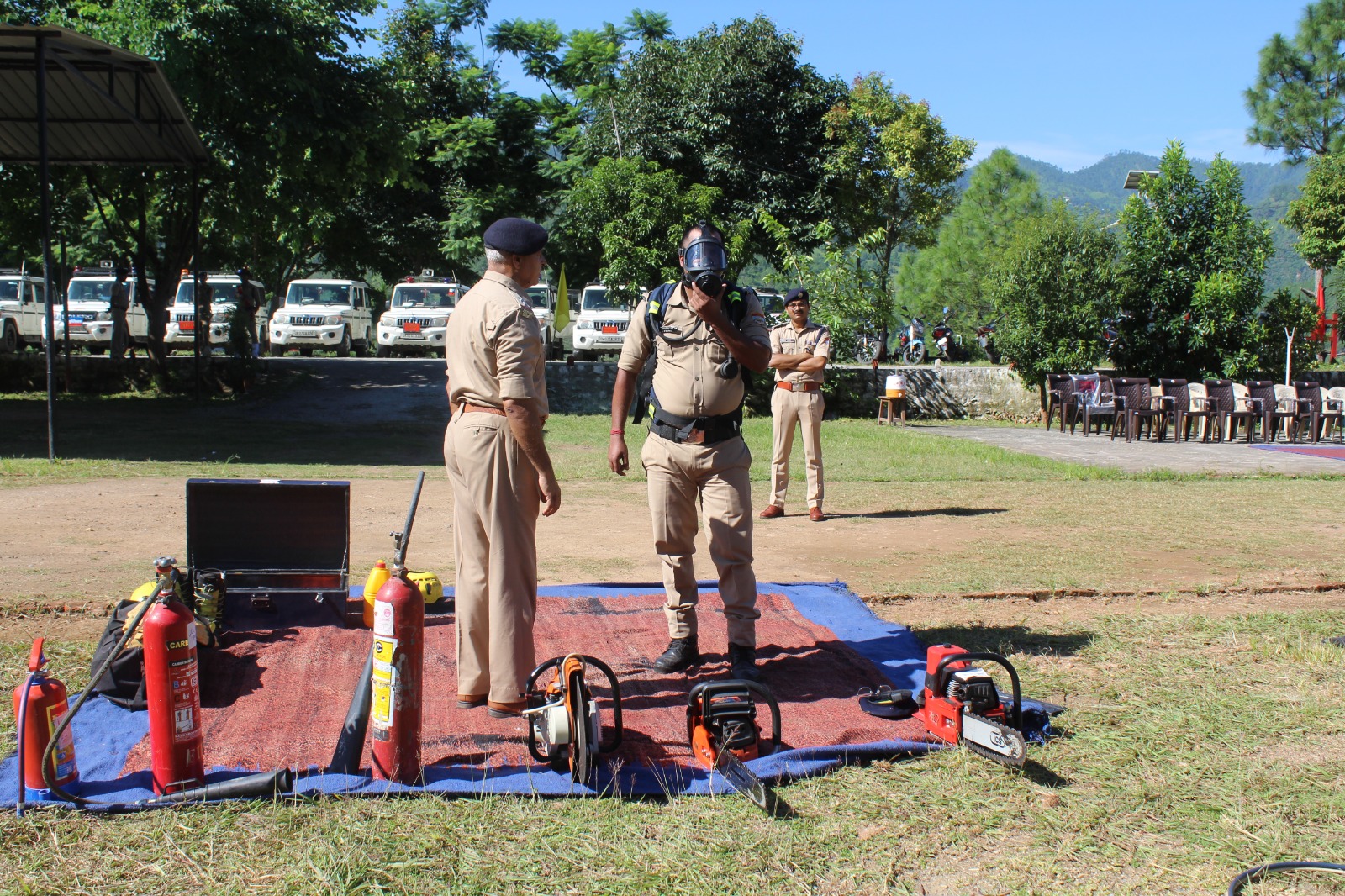 इसी क्रम में गोपाल सिंह रावत अग्निशमन अधिकारी बागेश्वर के नेतृत्व में फायर टीम द्वारा उपस्थित पुलिस अधिकारी/कर्म0गणों को अग्नि सुरक्षा उपकरणों एवं कटर मशीनों के प्रयोग के बारे में विस्तृत रुप से जानकारी व डैमों दिया गया।