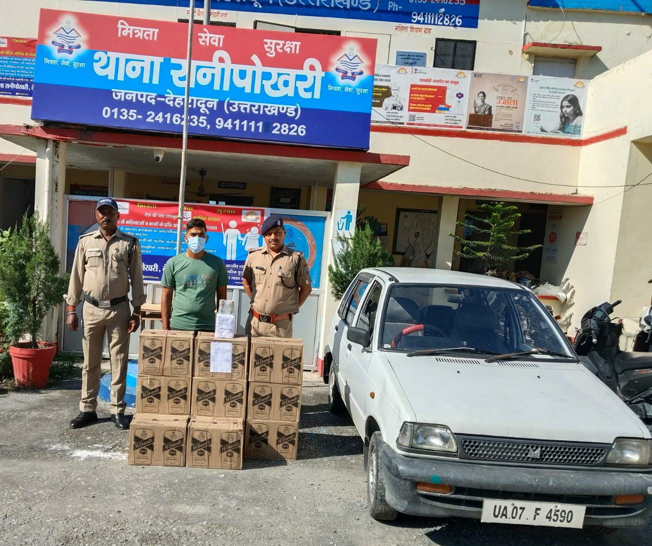 अवैध शराब/ मादक पदार्थों की तस्करी में प्रभावी अंकुश लगाते हुए इसमें शामिल अभियुक्तों के विरुद्ध प्रभावी कार्यवाही करने हेतु एसएसपी देहरादून द्वारा सभी थाना प्रभारियों को निर्देश दिए गए है। जिसके क्रम में दिनांक 29/08/24 को रानीपोखरी पुलिस द्वारा चेकिंग के दौरान रखवाल गाव, भोगपुर रानीपोखरी से 01 अभियुक्त को कार में अवैध रूप से 11 पेटी (132 बोतल) अंग्रेजी शराब परिवहन करते हुए गिरफ्तार किया गया।