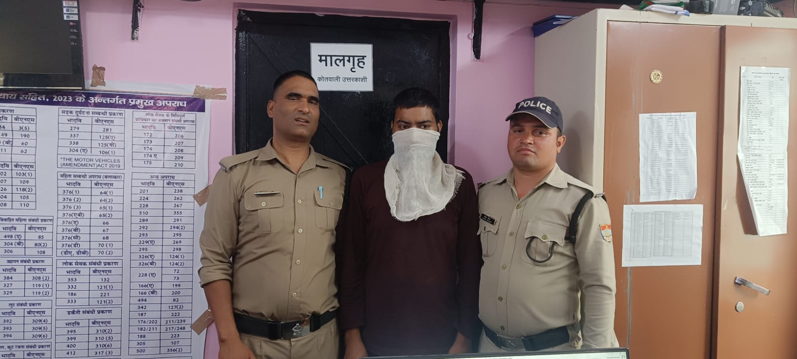 उत्तरकाशी प्रशासन द्वारा उत्तरकाशी जिला मुख्यालय में बिना लइसेंस चल रही अवैध मीट-मांस की दुकानों को सीज किया गया है, दुकान सीज होने के बाद भी उत्तरकाशी, तिलोथ में न्यू फाइन मटन शॉप के स्वामी अजहर पुत्र नियामत द्वारा मांस की दुकान के पिछले दरवाजे से चोरी–छिपे मांस बिक्री का प्रयास किया जा रहा था, जिसकी सूचना मिलने पर आज 11.09.2024 को कोतवाली उत्तरकाशी पुलिस द्वारा अजहर उपरोक्त सीज दुकान के पिछले दरवाजे से अवैध रुप से मांस बेचने के प्रयास तथा मजिस्ट्रेटी आदेशों की अवहेलना, अवैध कार्य तथा कानून व शान्ति व्यवस्था के दृष्टिगत कोतवाली उत्तरकाशी पुलिस द्वारा उक्त व्यक्ति को भारतीय नागरिक सुरक्षा संहिता की धारा 170/126/135/135(3) के अन्तर्गत गिरफ्तार किया गया।