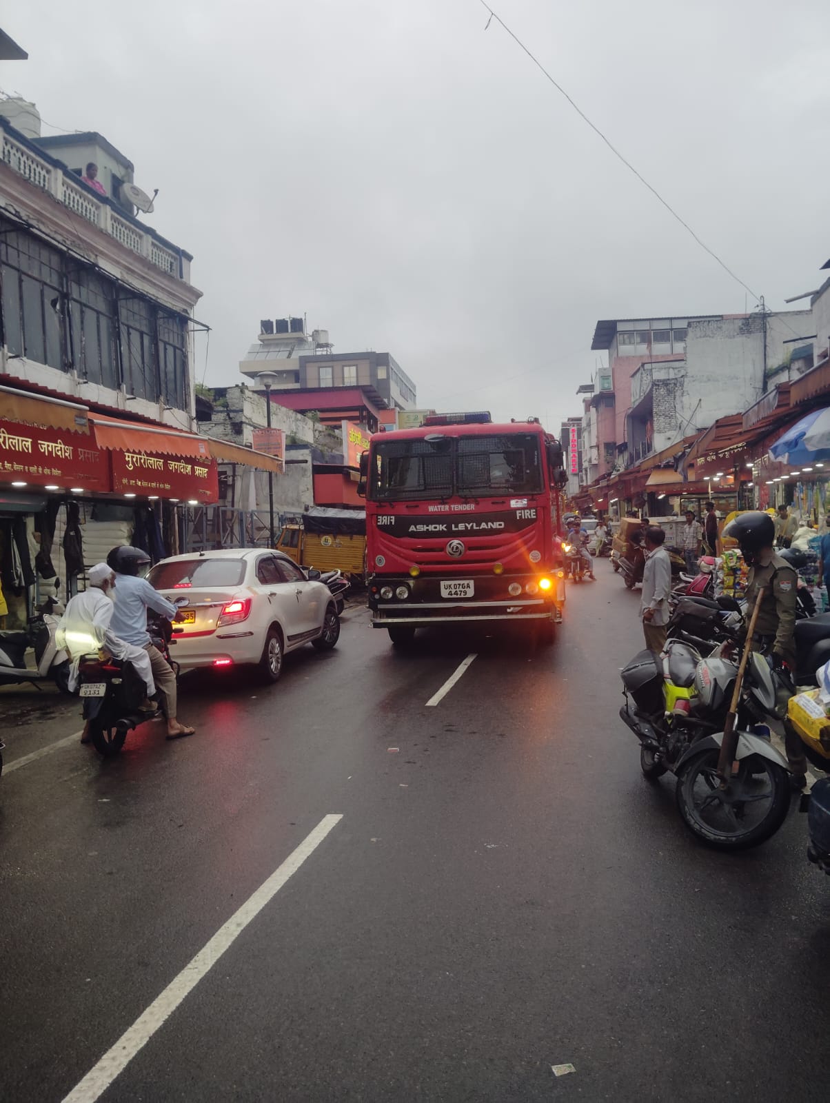 मॉक ड्रिल के दौरान दमकल के 02 बडे वाहनो द्वारा अलग-अलग मार्गो से पलटन बाजार में किया गया प्रवेश
