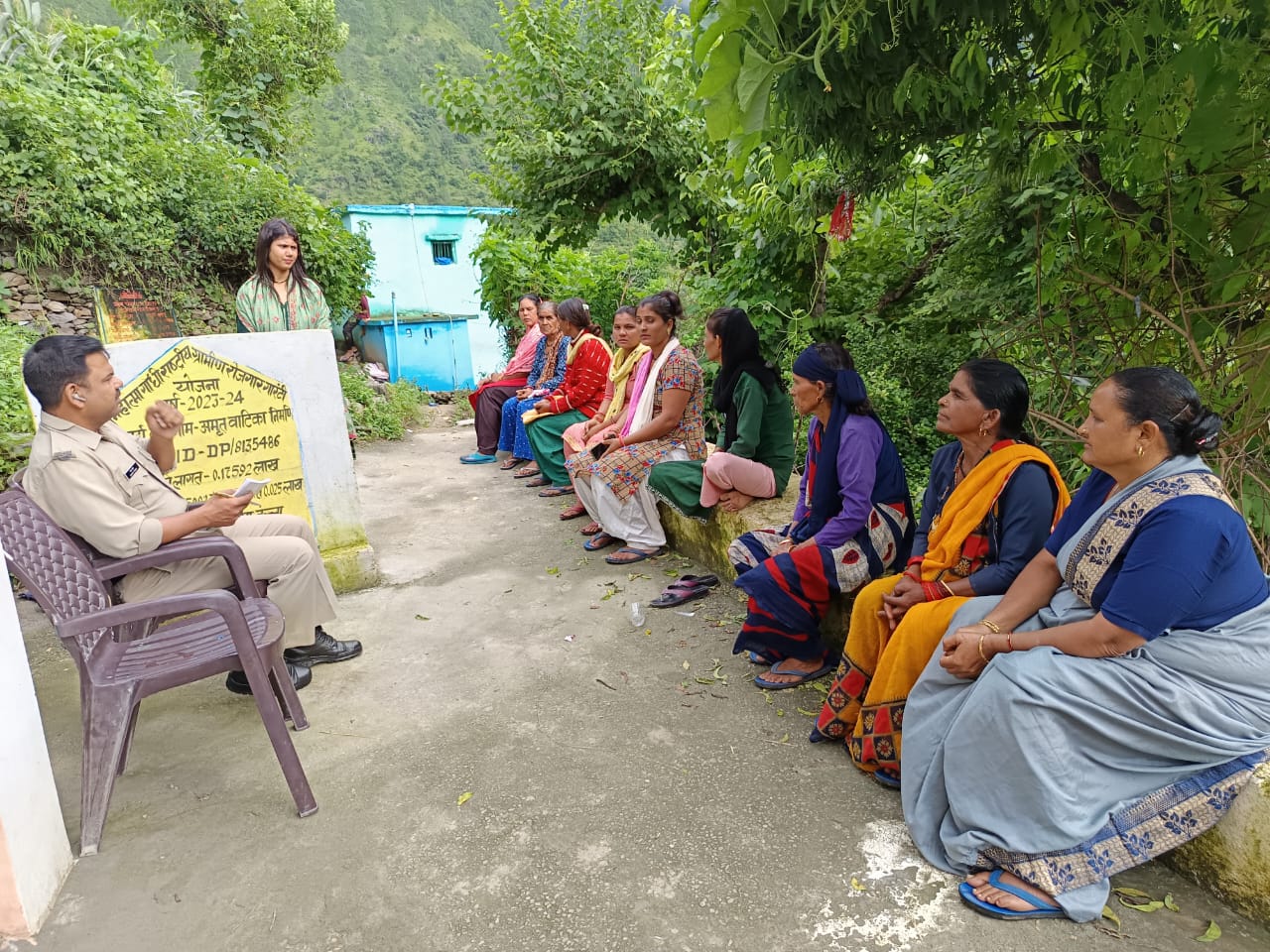 वरिष्ठ पुलिस अधीक्षक महोदय पौड़ी लोकेश्वर सिंह द्वारा जनपद के समस्त थाना प्रभारियों को अपने-अपने थाना क्षेत्रान्तर्गत ग्रामीण क्षेत्रों में जाकर महिला मंगल दल के सदस्यों से समन्वय स्थापित कर महिला सुरक्षा एवं नशा मुक्ति के सम्बन्ध में बैठक आयोजित कर उनके क्षेत्रान्तर्गत होने वाली अवैध गतिविधियों/मादक पदार्थों की तस्करी की सूचना देने के लिए प्रेरित करने हेतु निर्देशित किया गया है। जिसके क्रम में कोतवाली श्रीनगर द्वारा विकास खण्ड खिर्सू के अंतर्गत ग्राम सरणा, थाना-सतपुली, ग्राम-बागी (राजस्व क्षेत्र) व थाना धुमाकोट द्वारा ग्राम-ओलेथ की महिला मंगल दल व नवयुवक मंगल दल के सदस्यों की चौपाल लगाकर उन्हे बढ़ते हुए अपराधों की रोकथाम, मानव, गुड टच बेड टच, तस्करी, साइबर अपराधों से बचाव, सोशल मीडिया के दुष्प्रभावों व आपातकालीन नम्बर डायल-112 आदि के बारे में जानकारी दी गयी। साथ ही किसी भी प्रकार की सहायता या उनके क्षेत्रान्तर्गत होने वाली अवैध गतिविधियों/मादक पदार्थों की तस्करी की सूचना देने के लिए प्रेरित किया गया|