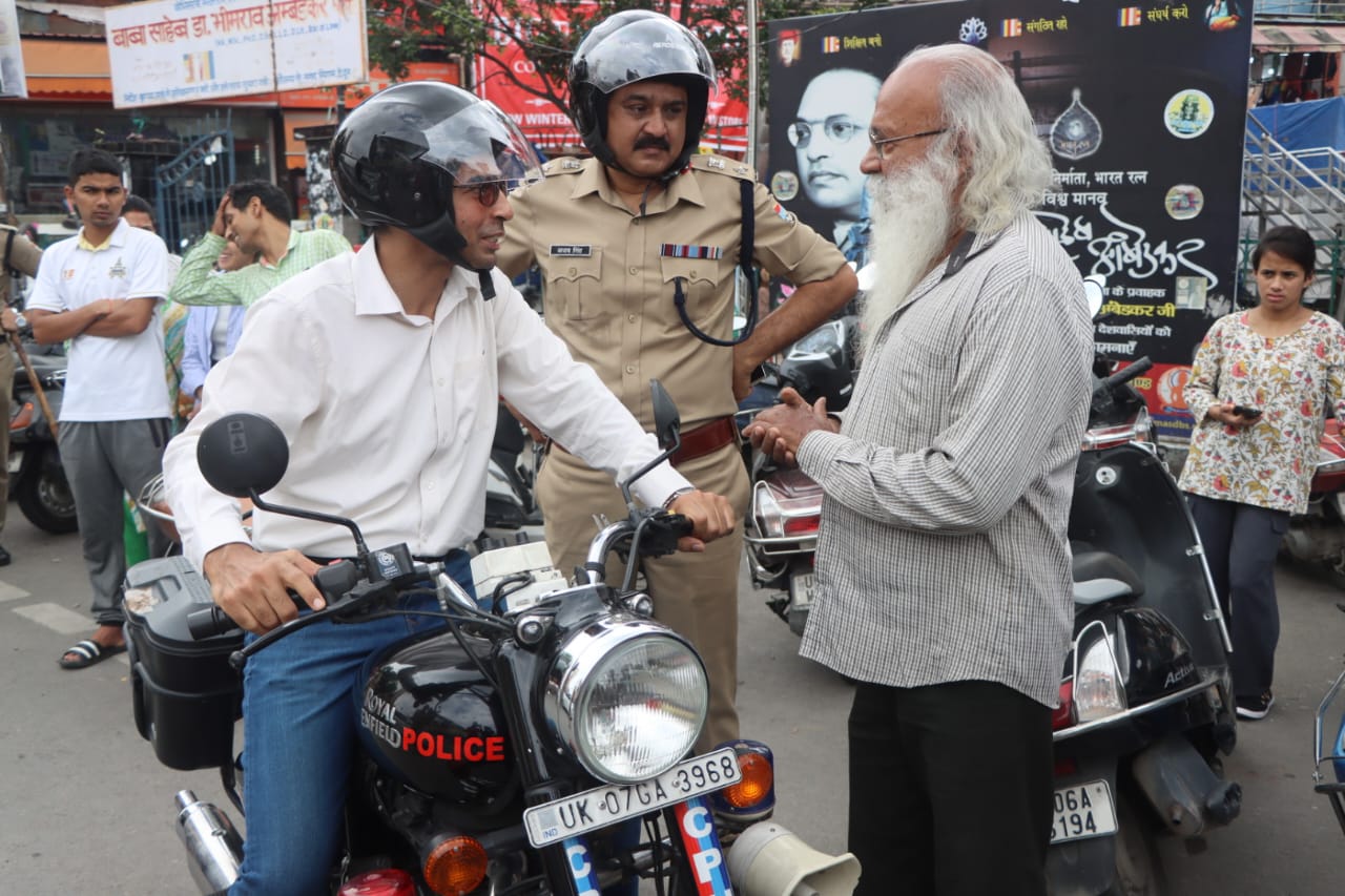 आज दिनांक 15/09/2024 को जिलाधिकारी देहरादून तथा वरिष्ठ पुलिस अधीक्षक देहरादून द्वारा नगर के विभिन्न मार्गो का मोटरसाइकिल से भ्रमण कर यातायात व्यवस्था का जायजा लिया गया। भ्रमण के दौरान डीएम देहरादून तथा एसएसपी देहरादून द्वारा घंटाघर, किशन नगर चौक, बल्लूपुर चौक, बल्लीवाला आदि स्थानों का मोटरसाइकिल से भ्रमण कर यातायात के दबाव वाले स्थानों का जायजा लिया साथ ही यातायात के दबाव के कारणों तथा दबाव को कम करने के संभावित उपायों पर चर्चा की। इस दौरान जिलाधिकारी देहरादून द्वारा सभी मुख्य मार्गो पर पार्किंग स्थलों को चिन्हित कर वाहनों को उक्त स्थान पर पार्क करवाने के निर्देश दिए गए, इसके अतिरिक्त मुख्य मार्ग पर किसी प्रकार का अस्थाई अतिक्रमण न होने देने के संबंध में उपस्थित अधिकारियों को निर्देशित किया गया।