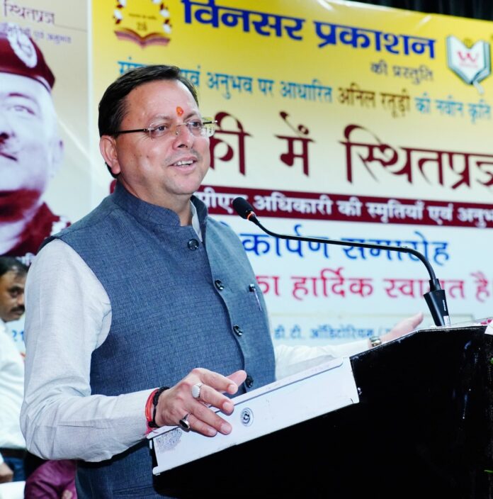 उत्तराखंड के मुख्यमंत्री पुष्कर सिंह धामी ने आज देहरादून में प्रदेश के पूर्व डीजीपी एवं सेवानिवृत्त आईपीएस अधिकारी श्री अनिल रतूड़ी द्वारा लिखित पुस्तक “खाकी में स्थितप्रज्ञ” का विमोचन किया।