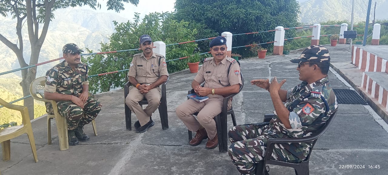 उपरोक्त क्रम में आज दिनांक 22-09-2024 को थानाध्यक्ष पंचेश्वर महोदय के निर्देशनुसार ASI श्री सुभाष राणा – प्रभारी चौकी मण्डल के द्वारा आंतरिक सुरक्षा के दृष्टिगत सीमांत ग्राम मण्डलक चम्पावत व भारत-नेपाल अंतर्राष्ट्रीय सीमा पर स्थित BOP धर्माघाट- सशस्त्र सीमा बल *(05 वाहिनी SSB) के साथ समन्वय गोष्ठी (Coordination meeting) का आयोजन किया गया। उक्त समन्वय गोष्ठी के माध्यम से भारत- नेपाल अंतरराष्ट्रीय सीमा पर सीमांत क्षेत्र की आंतरिक सुरक्षा के दृष्टिगत परस्पर लाभप्रद सूचनाओं का आदान प्रदान कर सीमा पर आ रही व्यवहारिक समस्याओं, आपदा प्रबंधन पर विचार विमर्श कर उनके निदान हेतु उपायों व परस्पर समन्वय पर चर्चा कर लाभप्रद सूचनाओं का आदान प्रदान भी किया गया।