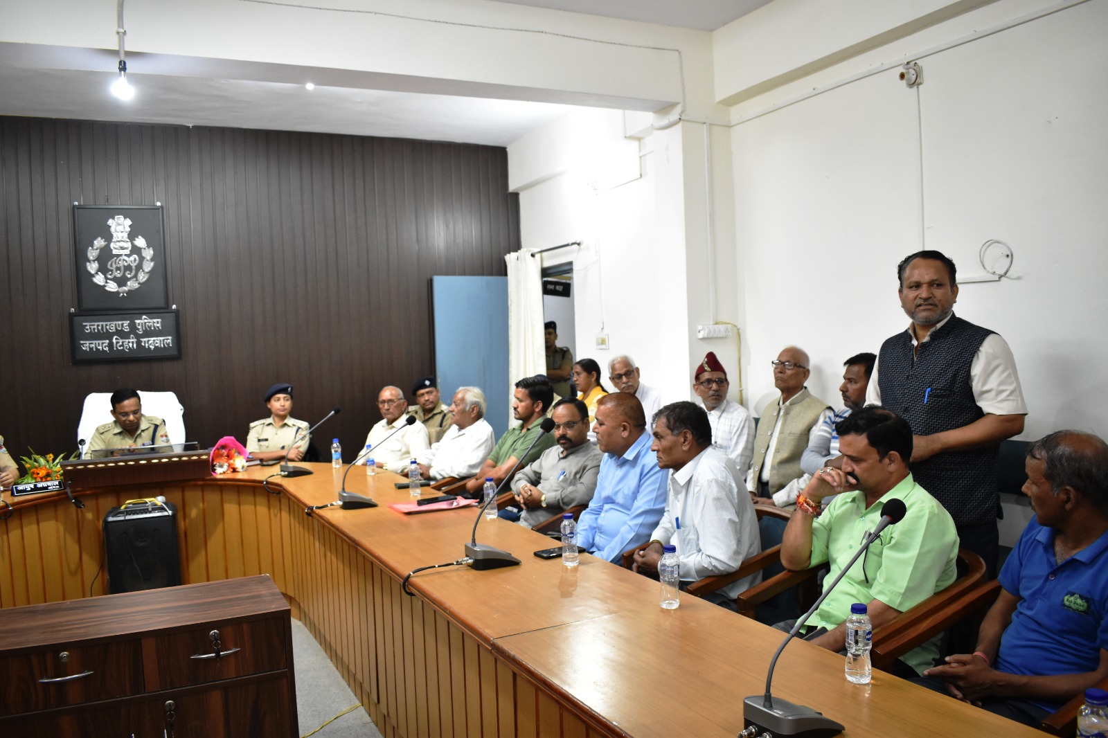 आयुष अग्रवाल, वरिष्ठ पुलिस अधीक्षक, जनपद टिहरी गढ़वाल द्वारा व्यापार मंडल, सामुदायिक समन्वय समिति (सीएलजी मेंबर्स), टैक्सी यूनियन, होटल एसोसिएशन, सीनियर सिटिजन के साथ समन्वय स्थापित करने हेतु की गई गोष्ठी।