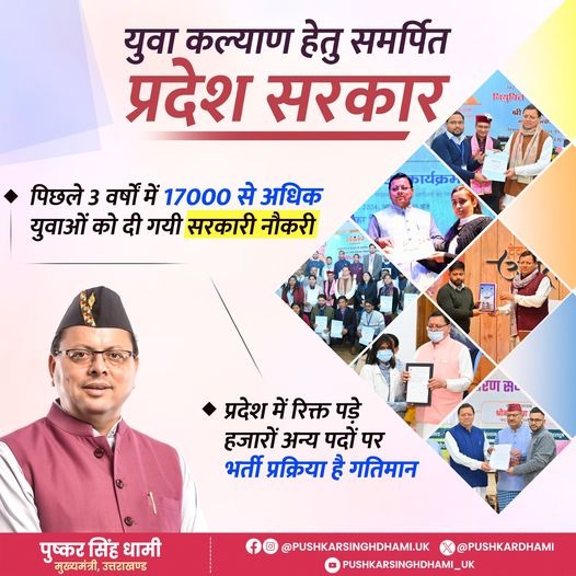 धामी ने यह भी जानकारी दी कि अन्य सरकारी पदों पर भी भर्ती प्रक्रिया तेज़ी से जारी है, जिससे और अधिक युवाओं को सरकारी सेवाओं में रोजगार मिल सकेगा।
