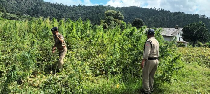 थाना पंचेश्वर पुलिस ने ग्राम मल्ला खतेड़ा में लगभग 05 नाली भूमि में अवैध रुप से की जा रही भांग की खेती को किया नष्ट।