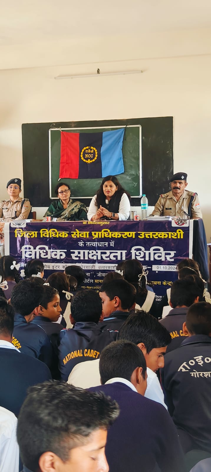 उत्तरकाशी पुलिस व विधिक सेवा प्राधिकरण की संयुक्त टीम द्वारा आज 01.10.2024 को राजकीय इंटर कॉलेज गोरसाली में ‘नशा विरोधी जनजागरूकता कार्यक्रम’ एवं ‘विधिक साक्षरता शिविर’ आयोजित कर छात्र/छात्राओं को नशा,साइबर, महिला अपराध व अन्य सामाजिक कुरीतियों के प्रति जानकारी देकर जागरुक किया गया। शिविर में माननीय जिला विधिक सेवा प्राधिकरण उत्तरकाशी की सचिव, श्रीमती श्वेता राणा चौहान द्वारा छात्र/छात्राओं को नशे के कुप्रभाव के प्रति सजग करते हुये नशे से दूर रहने तथा अपने कैरियर पर फोकस करने के लिए मार्गदर्शन किया गया। उनके द्वारा बताया गया कि नशा हमें शारीरिक, मानसिक व आर्थिक हर रुप से नुकसान पहुँचाकर जीवन को तबाह कर देता है इसलिये सभी नशे से दूर रहे, अपने आसपास के समाज को भी नशे के कुप्रभाव के प्रति सजग करें। इस दौरान उनके द्वारा सभी छात्र छात्राओं को विधिक अधिकारों के प्रति भी जागरुक किया गया ।